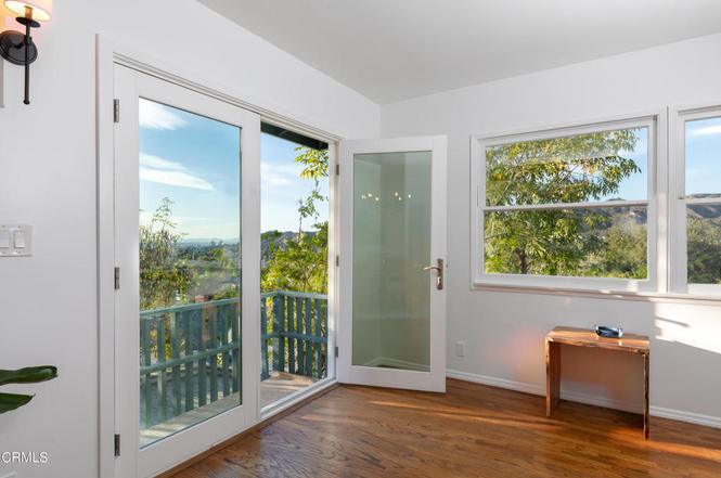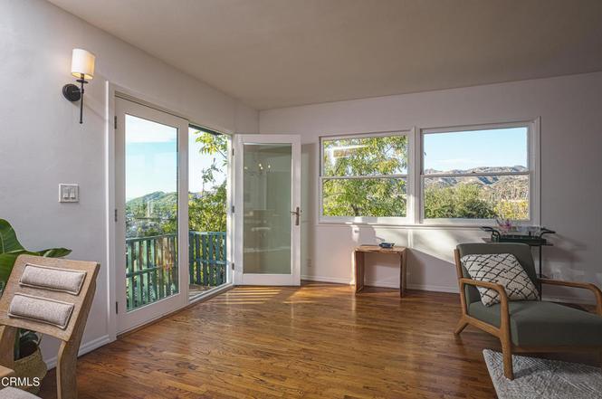 this charming 2-bedroom home boasts a secluded hillside setting with stunning panoramic views of the city lights and neighboring foothills. The inviting and airy interior features a modern, spacious kitchen with stainless steel appliances, shaker cabinets, and granite countertops. The cozy living room, complete with a fireplace, seamlessly connects to the dining area; both are bathed in natural light and offer picturesque views through the surrounding windows. The bedrooms are generously proportioned and offer ample storage, while two distinct patio areas provide delightful outdoor spaces for entertaining and relaxation.