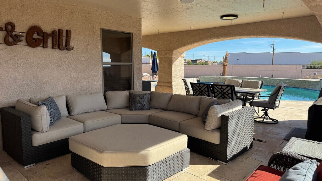 Welcome to "Sunsets, Views & Vibes - Your LHC Escape Awaits!" Nestled in the heart of Lake Havasu City, AZ, this stunning 3-bedroom, 3-bathroom home offers a perfect blend of comfort and luxury. The property boasts a propane heated pool and spa, perfect for year-round enjoyment. The outdoor living room provides a serene setting to soak in the panoramic lake and mountain views. With the capacity to sleep 8 guests, this home is ideal for those who love to entertain. The private 2-car garage offers ample storage and parking space. Inside, a cozy fireplace adds a touch of warmth and elegance. Conveniently located, this home is just a stone's throw away from shopping and dining options. Experience the best of Lake Havasu City living in this beautiful home.