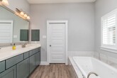 Andrea CurranCharming one-story craftsman style home in the highly desirable Bridgeland community! Enjoy a welcoming covered front porch ideal for relaxing. Inside features plantation shutters and solid surface flooring throughout. Spacious island kitchen with granite countertops, stainless steel appliances, subway tile backsplash and plenty of cabinet space. Private primary suite includes a jetted tub, double vanity, frameless glass shower and large walk-in closet. Split floor plan offers comfort for all. Covered back patio perfect for outdoor dining and entertaining. Bridgeland offers excellent community amenities including pools, splash pad, parks, walking and biking trails, recreation center and more. Zoned to top-rated CFISD schools. Well-maintained home ready for its next resident!