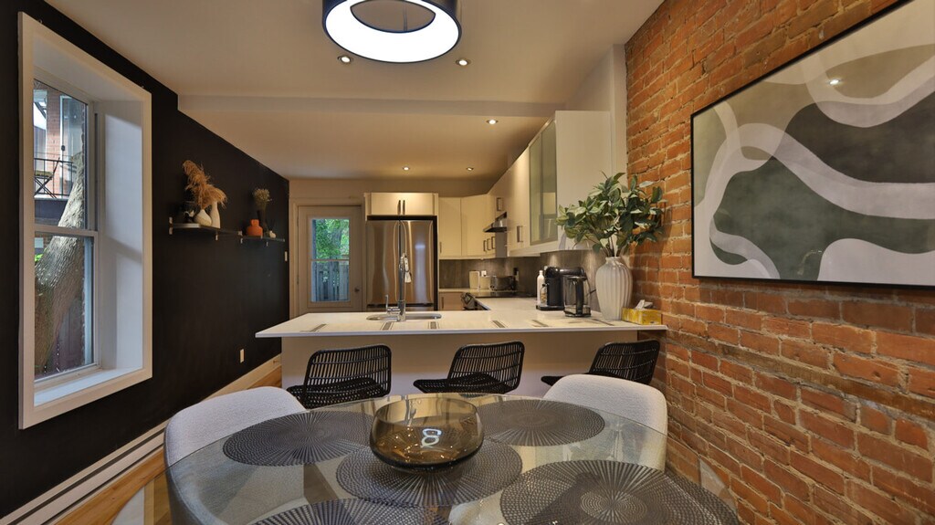 Welcome to your perfect getaway in Montréal! This beautifully renovated 3-bedroom apartment offers a blend of modern comfort and classic charm, making it the ideal retreat for business travelers, families, or those exploring the city. Nestled in the vibrant Ville-Marie neighborhood, conveniently located between Plateau and The Village, enjoy easy access to Montréal’s top attractions, shops, and restaurants while staying on a peaceful street. This bright and airy apartment is thoughtfully designed for a memorable stay. It features three spacious bedrooms with two queen beds and one double bed, all with high-quality linens and ample storage. The cozy living room includes a comfortable sofa and flat-screen TV for relaxation. The fully equipped modern kitchen boasts stainless steel appliances, a coffee maker, and all essentials. The sleek bathroom offers a bathtub, soft towels, and complimentary toiletries. Additionally, enjoy a private backyard with outdoor seating, perfect for al fresco dining or unwinding after a day in the city. Stay connected with Wi-Fi, enjoy entertainment on the flat-screen TV, and cook meals in the fully stocked kitchen. Snow removal is provided within 24 hours after snowfall of 5 cm or more, with a shovel and salt available for use. The base price is for a minimal number of people, and each additional person will incur an extra cost. The maximum occupancy of the unit must be followed at all times. If the number of people exceeds the number registered initially without notice to the landlord, a fee of $70 per person per day will apply automatically. To avoid check-in problems and surcharges, ensure to book for the right number of travelers as the number of people will be checked during your stay. Breakage and damage must be reported to the landlord as soon as possible. Registration Number: 319213 [SI]