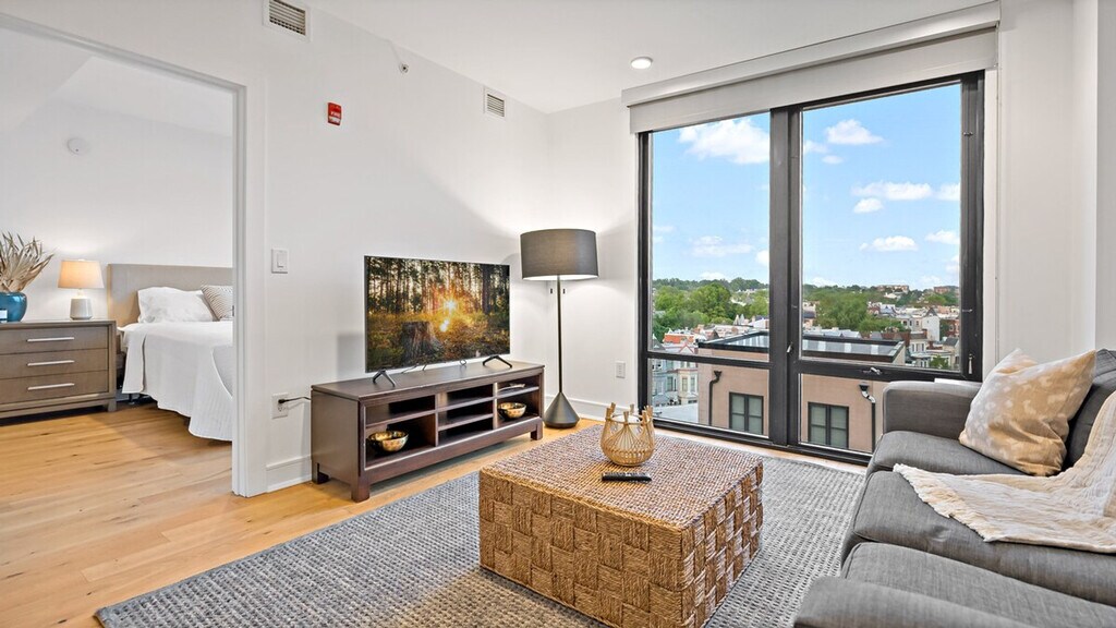 Feel at home in this bright 1-bedroom apartment in the heart of Washington, DC, offering chic furnishings and great views. This apartment features a modern kitchen. A parking garage is available for an additional daily/monthly fee and must be arranged in advance. Pets are welcome for an additional daily/monthly fee; please inquire before booking. The apartment is located steps from Shaw’s best dining, shopping, and entertainment options, offering a perfect blend of modern comfort and vibrant city living. This is a busy street on the weekends. Shaw is a vibrant, upcoming hotspot for Washingtonians, which includes many restaurants, bars, and nightlife right outside your doorstep. [SI]