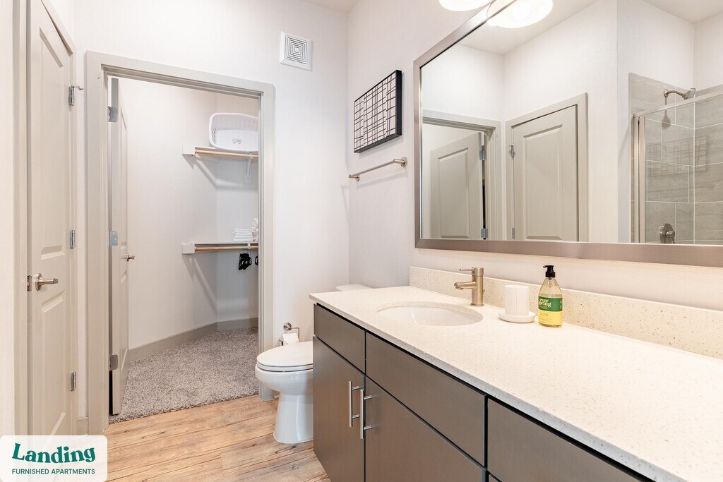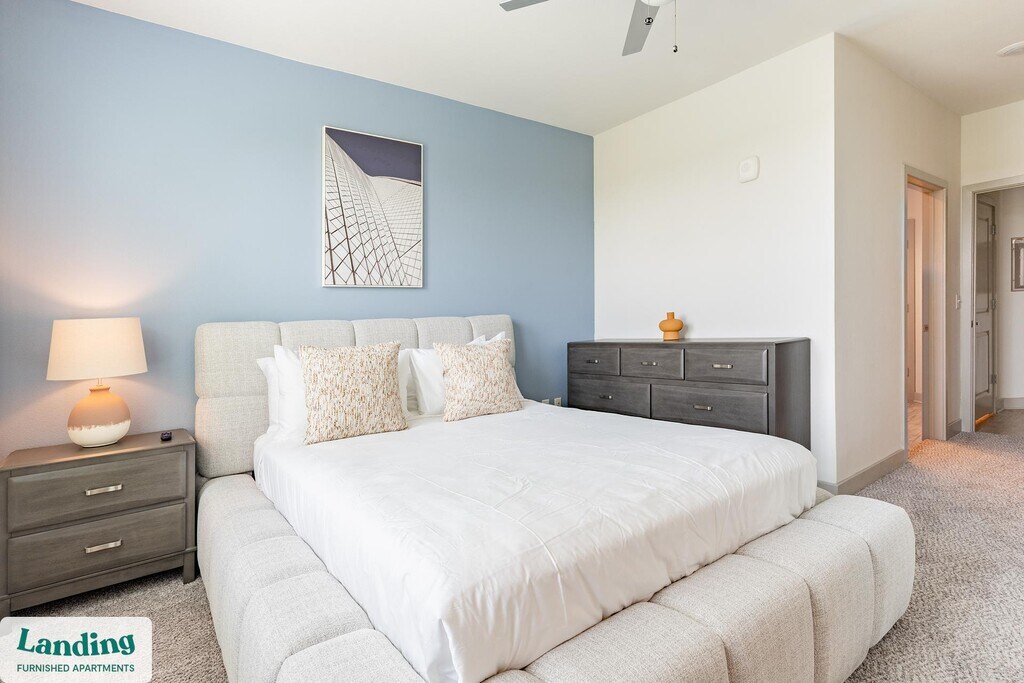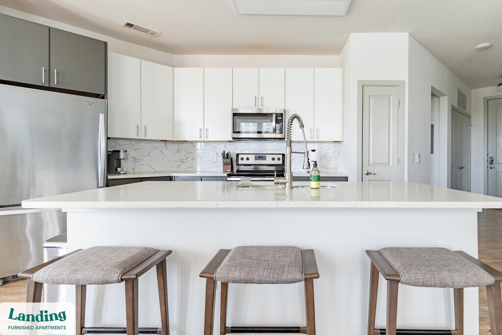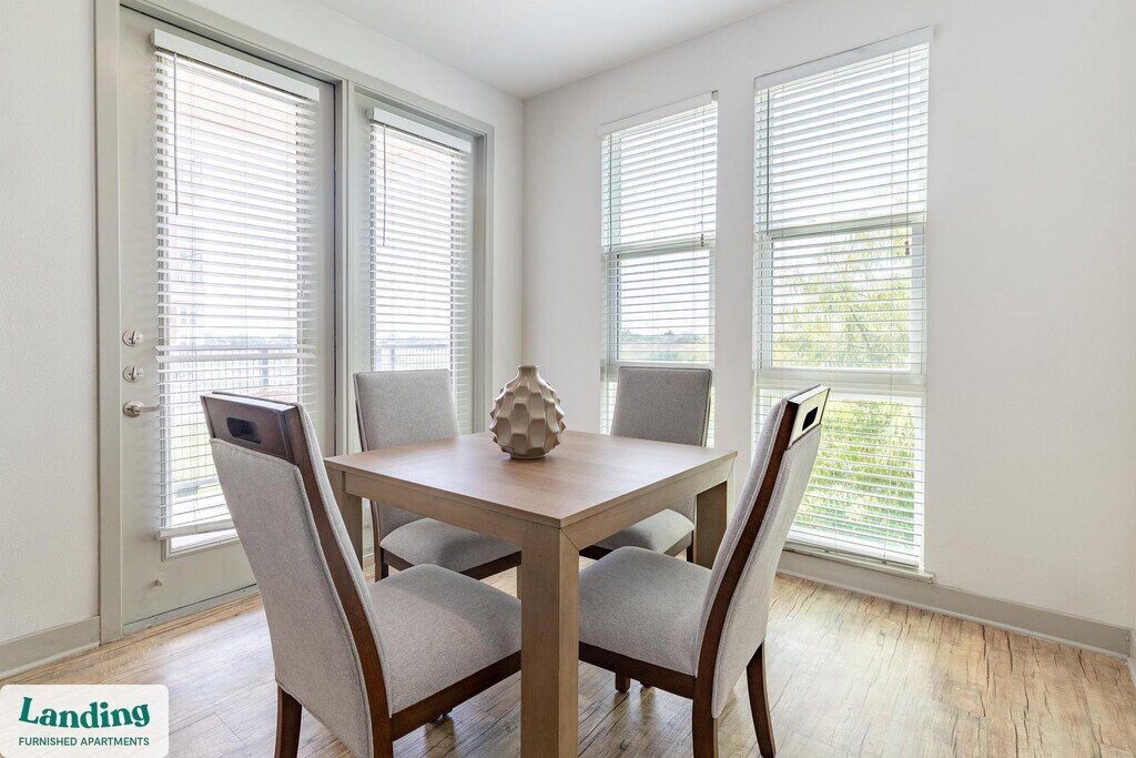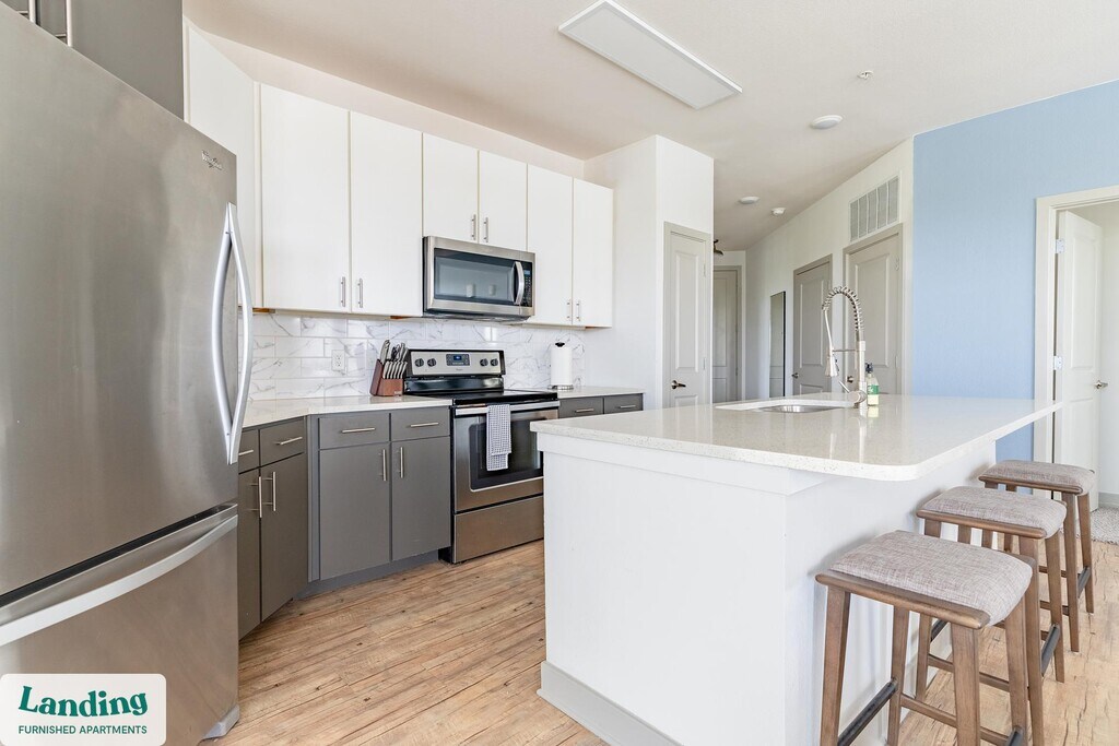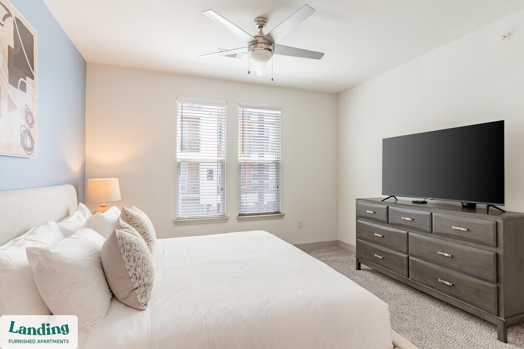 Landing offers flexible lease terms from weeks to months. Please always visit our website or contact us for the latest pricing & availability. Stay longer, save more: 6-Month Minimum base rent: starts at $2630/mo 12-Month Minimum base rent: starts at $2330/mo Landing offers flexible leases across a network of over 35,000 fully-furnished apartments throughout 375+ cities so you can rent on your terms, practically anywhere, and avoid the hassle of paying deposits or application fees. Visit to learn about all the benefits of a Landing membership, see our competitive up-to-date pricing, explore available apartments, take virtual tours, and make reservations online without jumping through traditional rental hoops. Landing's apartments at Shelby at Northside are designed for comfortable, easy living, with the ability to stay as long as you like. Experience living with Landing Every apartment is outfitted with all the modern essentials including: custom-designed furnishings, a fully-equipped kitchen with deluxe stainless steel appliances, a gourmet coffee maker, premium linens, Smart TVs, and incredibly fast, reliable internet for working from home. When you live with Landing, you'll enjoy a hassle-free experience with the added benefit of 24/7 access to our dedicated member experience team. Some of the nitty-gritty: a background check and proof of income are required; we're completely smoke-free; bundled utility packages and pricing vary based on length of stay; pet-friendly options available; listed price reflects a 12-month minimum stay.