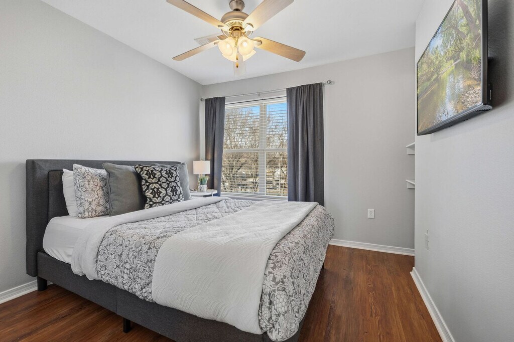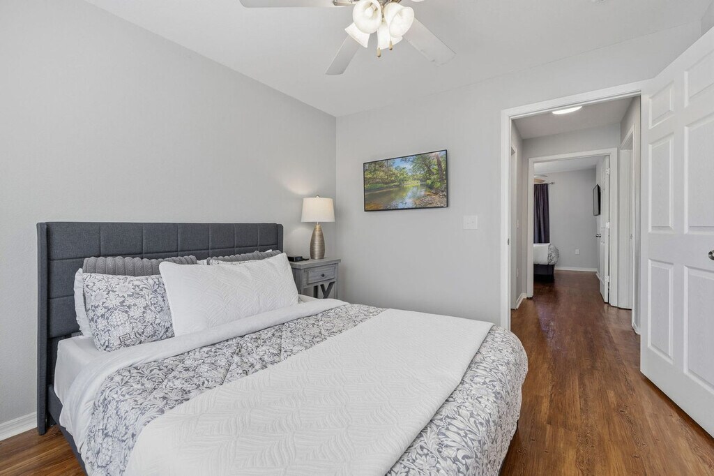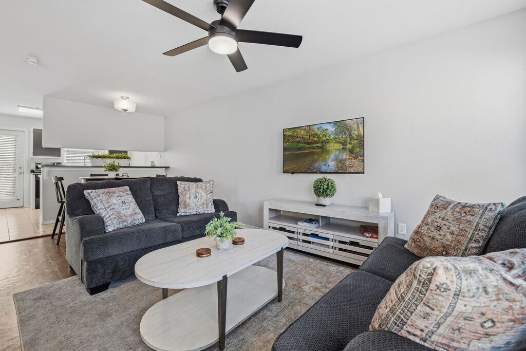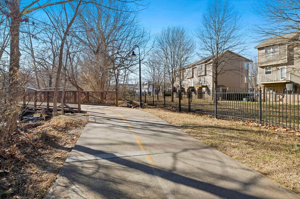 Feel at home in this 3-bedroom, 2.5-bath townhome nestled along the famous Razorback Greenway trail. This home offers amenities for up to 6 guests. The open living space features plush seating, a Smart TV, and board games. The fully stocked kitchen allows you to make a home-cooked meal and enjoy it at the kitchen island. A washer and dryer are available for guest use. This property is pet-friendly with a fee of $90 per dog, with a maximum of 3. Located just 2 miles from Downtown Fayetteville and the University of Arkansas, this home allows you to easily enjoy the entertainment district, historic square, a Razorback game, and many shops and eateries. Easily hop on the trail to explore Fayetteville. Home to the University of Arkansas, amazing local restaurants and shops, and popular bike trails, Fayetteville does not disappoint. Located right by the college campus with public transit, bike trail access, and ride share available. Check-in is any time after 3:00 PM. Parties or guest actions that result in disturbances, property damage, extensive extra cleaning, or smoking indoors will incur a fine of $1,000. Dogs discovered at the property without prior notice or cats discovered at the property will incur a fine of $400. Unauthorized checkout delays will incur a fine of $100 per hour. Quiet hours are observed from 10:00 PM to 10:00 AM. Registration Number: STR- [SI]