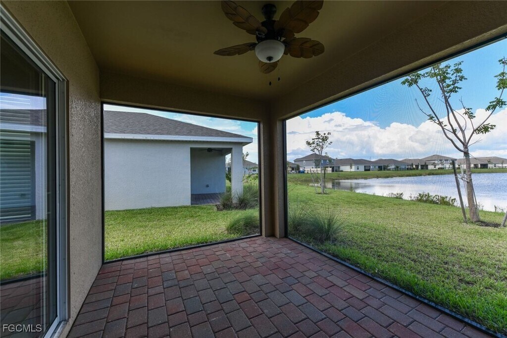 Brightwater community of North Ft. Myers is a very conveniant place to live. This single house has 3 bedrooms,2 bathrotms,two car garages with fenced backyard. Screen lanai with lake view is good place to enjoy the water view. Wi-Fi is including. The owner pays HOA and the Lagoon. A 6-acre crystal-clear lagoon is with a swim-up bar,cabana cove,and floating obstacle course is the best place for your family to enjoy your life. It is located just one mile from I-75. It's easy for you to access to shopping,dining,and entertainment.