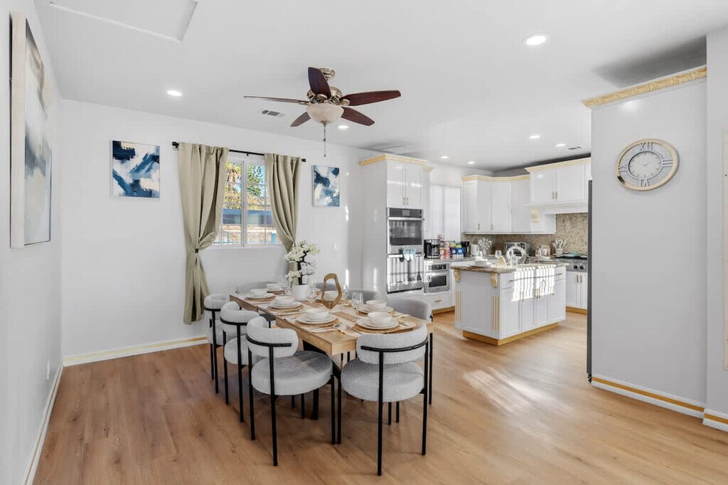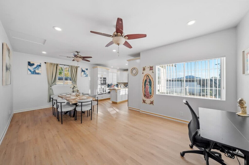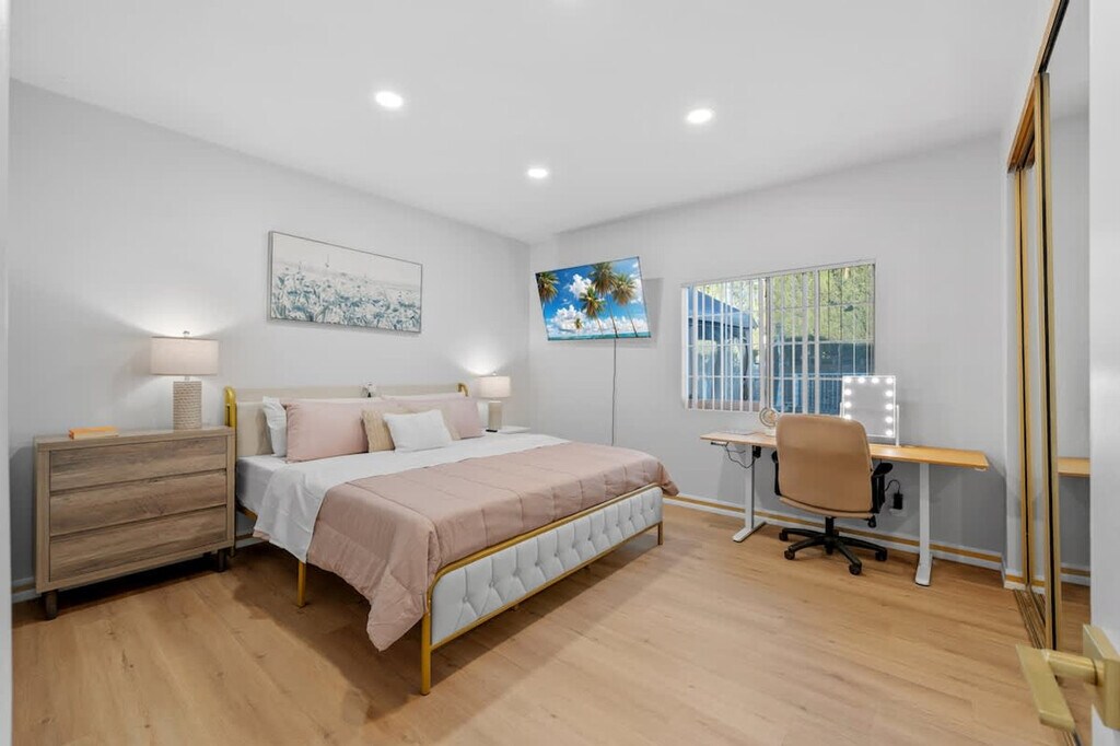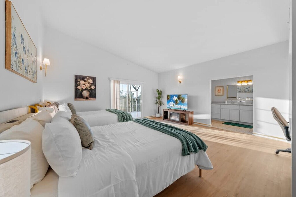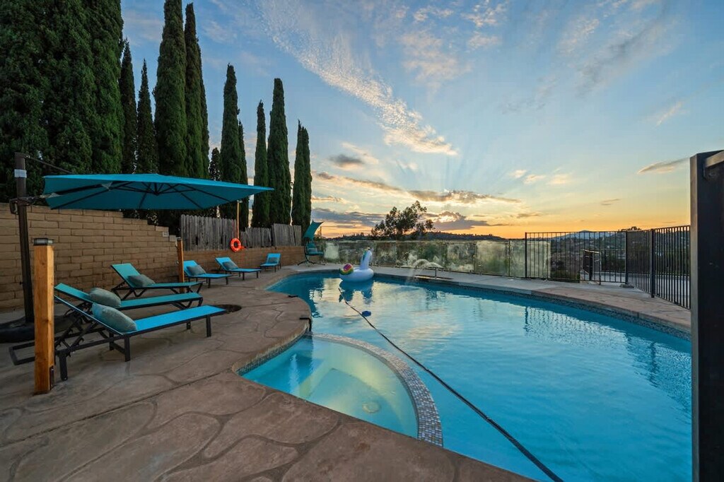 The advertised rate of $16,073/month is the lowest available price, based on a 30 day(s) stay with a move-in date of October 18, 2026. Rates vary depending on the duration of stay, season, and other parameters. For exact pricing and additional pricing components, please visit our website and enter your desired move-in and move-out dates. The rate is applicable when billed upfront; it can be higher if billed in multiple payments. Welcome to this family home in El Cajon, where you'll feel at home in this spacious property with 4 bedrooms. Enjoy the extra spacious yard with a pool and grill, perfect for relaxation and entertainment. The living room features central air conditioning and a 75-inch flat-screen smart TV with cable and Roku for streaming services. A PS4 game console is also available. The kitchen is fully equipped with modern appliances, including a coffee machine, and essentials like coffee, cooking oil, sugar, and salt. There are dining tables and chairs both inside and outside for at least 16 people. The bathrooms are fully stocked with a walk-in shower, bathtub, shampoo, body wash, a hairdryer, and fresh towels. An in-unit washer, dryer, and detergent are available for your convenience. Driveway parking is available for 4-5 cars, providing convenience and security. Pets are welcome. Located in Rancho San Diego, this home is nestled in the rolling hills east of downtown El Cajon, known for its peaceful streets and scenic mountain views. Enjoy a quiet suburban retreat with quick access to nature, shopping, and entertainment. Downtown San Diego and the Gaslamp Quarter are approximately 20–25 minutes away, while San Diego International Airport is about 25–30 minutes away. La Mesa Village is a 10–15 minute drive, and Mission Valley/Fashion Valley Malls are around 20 minutes away. Balboa Park and the San Diego Zoo are approximately 25 minutes away, and Pacific Beach and Mission Beach are about 30–35 minutes away. Coronado Island is a 30-minute drive, and Julian Mountain Town is approximately 40 minutes away. Quiet hours are observed from 9 PM to 8 AM. Please keep noise to a low level at all times, and after 9 PM, all activities must move indoors with windows and doors closed to avoid disturbing neighbors. Excessive noise may lead to neighbor complaints or visits from local authorities, and a $1,000 violation fee may apply. Only guests and pets counted on the reservation are allowed on the property, and each unauthorized guest or pet may incur a $100 per person/pet per day/night fee. Tampering or disconnecting security cameras, noise monitors, or other security devices will result in a $1000 fine. A minimum fee of $100 may be applied to key-related issues such as forgetting to return keys after checkout, lost keys, locking yourself out and requiring us to travel to bring spare keys, or key replacements, etc. If your dogs bark or potentially make loud noise when they are alone at the house, please bring them with you or place them somewhere quiet to avoid neighbor complaints. Fast 500 Mbps Wi-Fi is available, making it easy to host online meetings or share large files. [SI]