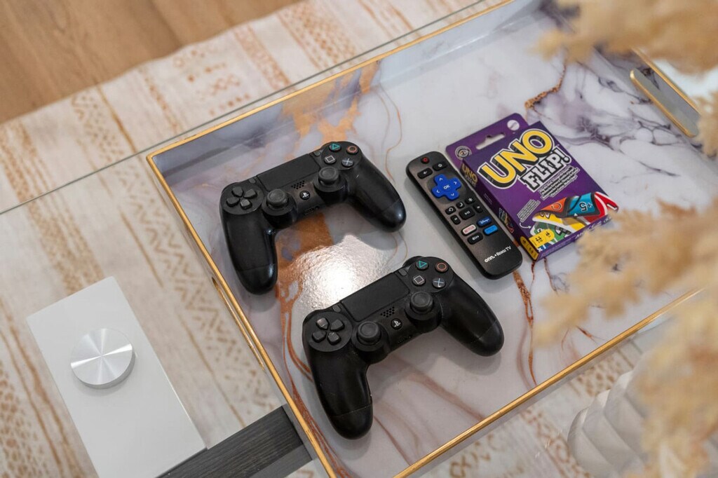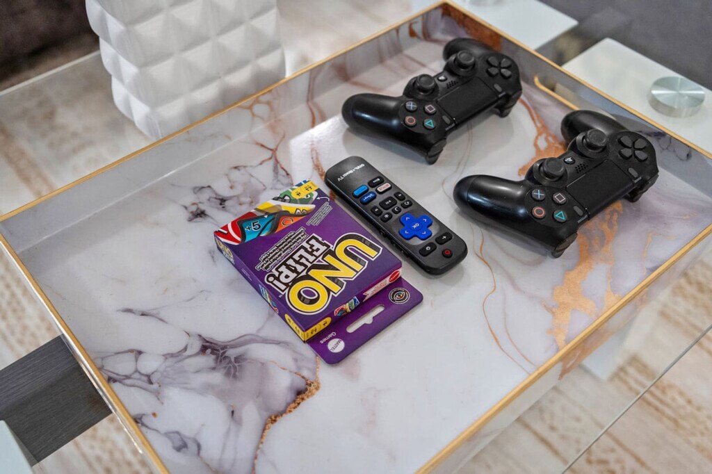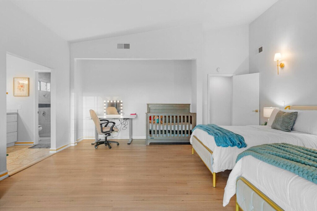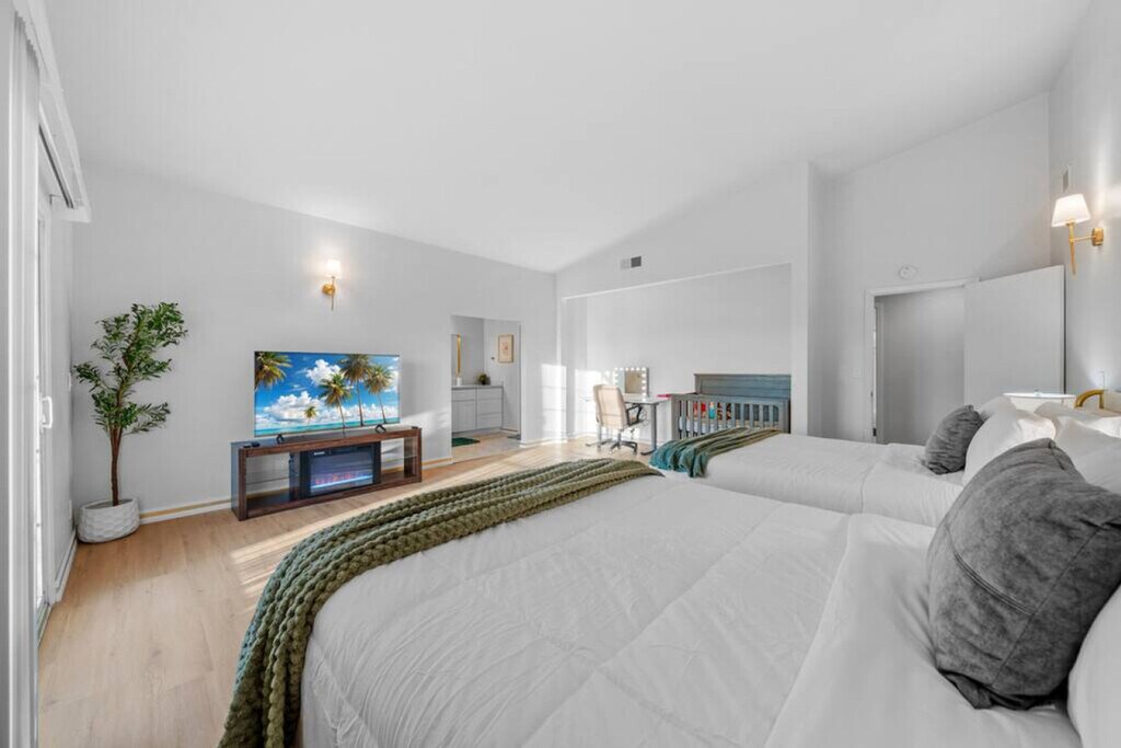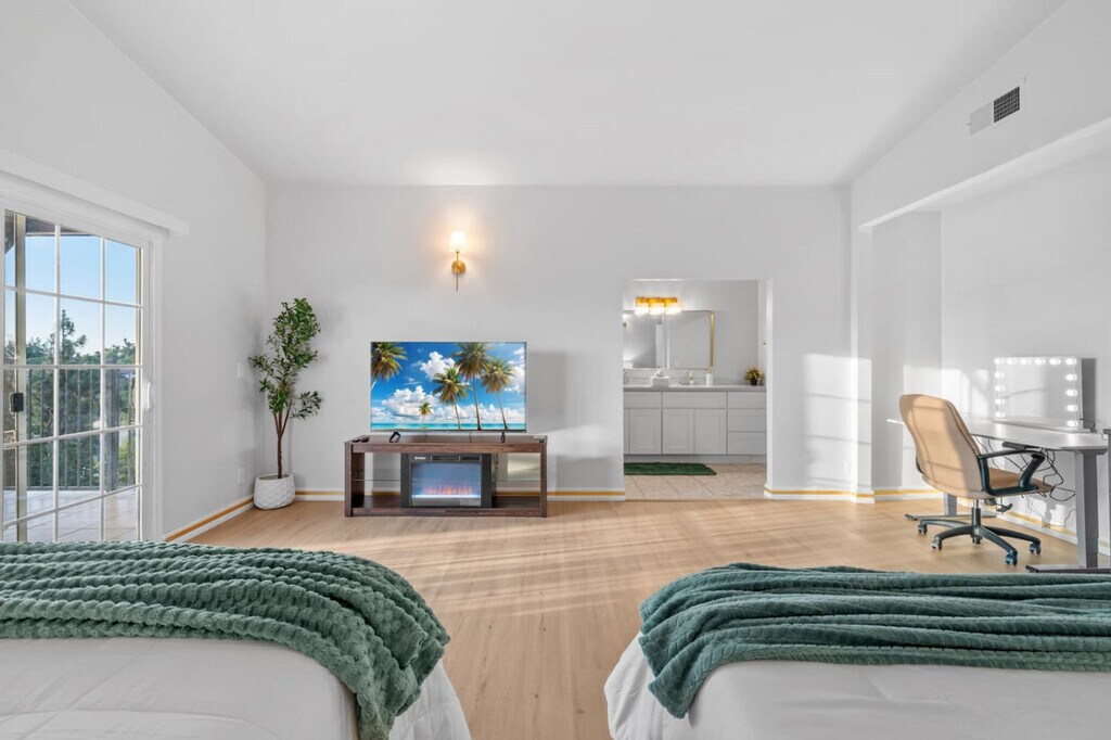 Welcome to this inviting family home in San Diego, El Cajon, where you can feel at home with its extra spacious yard, pool, and grill. The property features four bedrooms, all located on the ground floor with walk-in showers, and offers driveway parking for four or more cars. Enjoy the best view in El Cajon from this charming residence. The living area is centrally air-conditioned and boasts a 75-inch flat-screen smart TV, super snug couches, and a PS4 game console. The kitchen is equipped with modern appliances, including a coffee machine, and the dining area accommodates up to 16 people both inside and outside. The home also includes two fully stocked bathrooms with walk-in showers and bathtubs, as well as an in-unit washer and dryer. Pets are welcome in this home. Driveway parking is available for four or more cars, providing convenience and security. Early check-in at 1 PM and late check-out at 1 PM are available for a small fee to accommodate your schedule. Situated in El Cajon, this home offers easy access to local attractions and amenities. For accurate distances to specific locations, use Google Maps with the address 'Penasco Rd, El Cajon CA 92019'. The entire home upstairs and the pool area are yours to enjoy, while the downstairs unit is undergoing minimal remodeling and has its own gate and yard. The two units do not share any facilities. Access the pool by using the stairs on the left side of the house. Self-check-in is available via lockbox or keypad, with instructions sent at noon on your check-in day. Smoking is only allowed outside the home, and guests are reminded to treat the home as their own, as it is cleaned with natural products by the family. If your dogs tend to bark or make noise when left alone, please take them with you or place them somewhere quiet to avoid disturbing the neighbors. For remote work, the home offers a choice of desks and chairs both inside and outside, along with fast 5G AT&T Wi-Fi, making it easy to host online meetings or share large files. [SI]