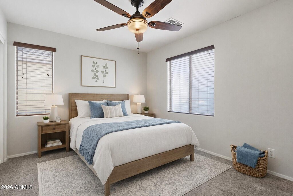 Perfect Gilbert location! This spacious 2-story,3 bedroom,2.5 bathroom home located in the prestigious Lyon's Gate Community. Chef-friendly kitchen featuring sleek appliances,rich cabinetry,breakfast bar,and dining area. Relax in the generously sized primary bedroom complete with an en-suite bathroom,private toilet room,and walk-in closet. 2 additional bedrooms and one full bath upstairs. Large great room. Backyard with covered patio. Community pool and parks. Just minutes to Agritopia,shopping,dining,San Tan Mall,Top Golf and freeways for easy commutes.