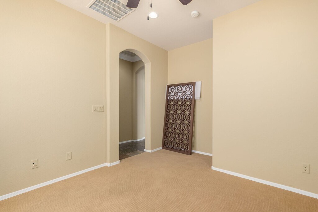 625 minimum credit required. Located in the gorgeous Estrella Mountain Ranch development. This home has two bedrooms plus an office / den or nursery. This home has a large dining room, and all appliances are included! Custom paint and a very quiet backyard. Enjoy the incredible community amenities with just a $100 one time fee. Estrella Mountain Ranch has gyms, pools, a golf course, and miles of walking trails! $1900 security deposit, $500 cleaning fee, NO PETS, monthly admin fee of $20. Tenant must provide proof of tenant insurance during their tenancy.