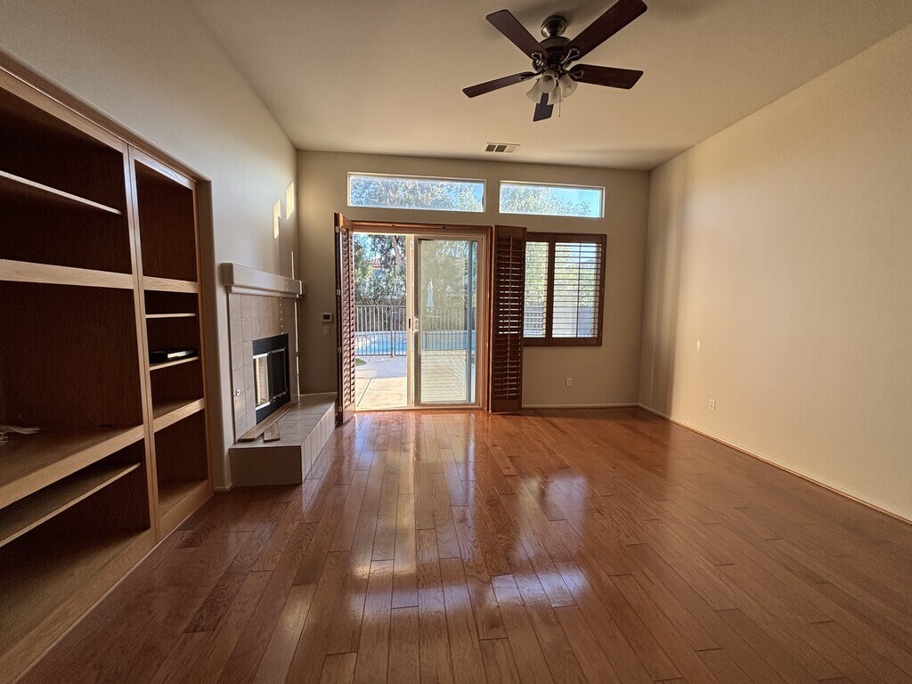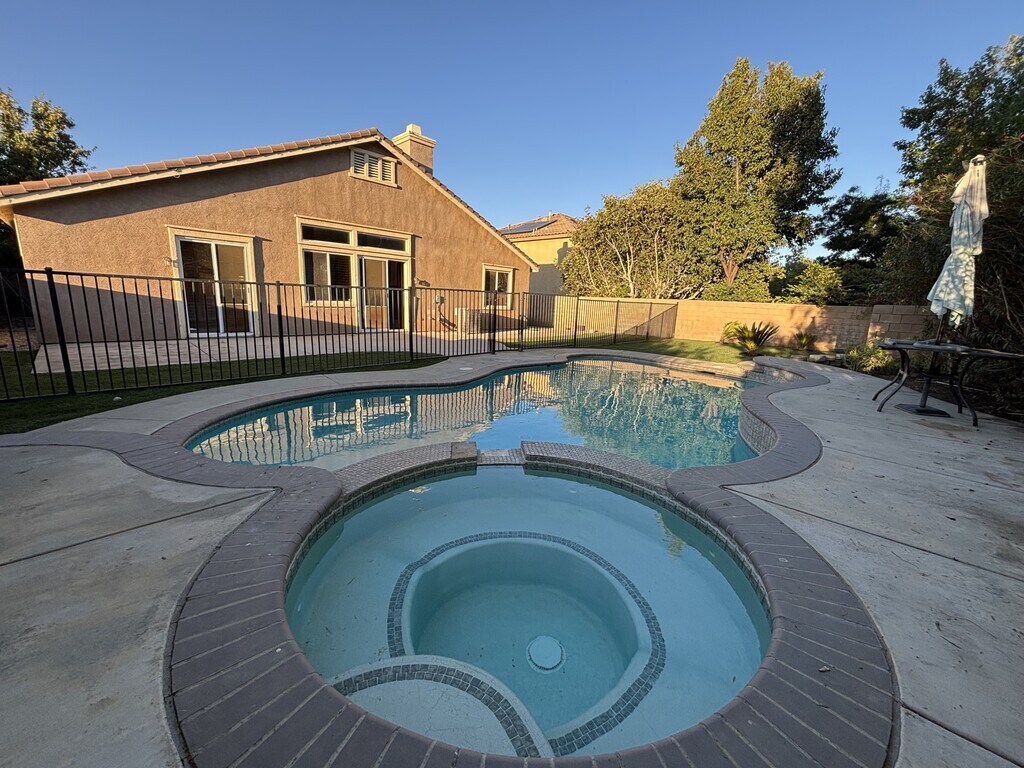 "PRICE REDUCED" Stunning Single-Story Pool Home with Premium Upgrades! Discover your dream rental in this beautifully appointed, 2,278 square foot single-story pool home. Located in a desirable neighborhood near Marie Kerr Park, shopping, and just minutes from the 14 freeway, this property offers the perfect blend of luxury, space, and convenience. Exceptional Interior Features Step inside to a home that feels brand new, featuring new carpeting and fresh paint throughout. This spacious layout includes four bedrooms and two full baths. You'll be greeted by elegant hardwood floors, high-end plantation shutters, and comfortable ceiling fans, creating a sophisticated and welcoming atmosphere. The heart of the home is an expansive open-concept area designed for modern living: Gourmet Kitchen A chef's delight with a massive center island, ample counter space, and stainless steel appliances, including a microwave, cooking range, and dishwasher. Great Room Flows seamlessly from the kitchen, perfect for entertaining, and features a cozy, tiled fireplace. Formal Areas Enjoy the versatility of a separate formal living room and formal dining room for special occasions. Luxurious Master Suite and Amenities The private master bedroom suite is a true retreat, boasting a sliding glass door with plantation shutters that opens directly to the back patio—ideal for morning coffee or a late-night dip. You'll also appreciate the generous closet space found throughout the entire home. Outdoor Oasis and Location The home's exterior has been meticulously maintained with new landscaping that enhances the curb appeal. The backyard is a private oasis, centered around a sparkling swimming pool, perfect for relaxing and entertaining year-round. Further conveniences include a large three-car garage providing plenty of storage and parking. Key Highlights: Pool Home with New Landscaping 4 Bedrooms / 2 Baths 2,278 Sq. Ft. Single Story New Carpet & Fresh Paint Hardwood Floors & Plantation Shutters Very Spacious Kitchen with Large Island 3-Car Garage Prime location near Marie Kerr Park, shopping, and 14 Fwy access.