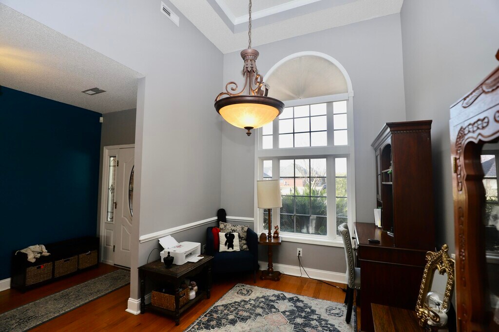 Gorgeous 4 bedroom,2.5 bath brick home in Beach Forest with amazing vaulted ceilings throughout. As you enter the home you are welcomed by an open floor plan of the foyer,dining room and living room. The living room has a large built in with a fireplace. To the left you will find 2 nice size bedrooms and a full bathroom. Right off the living room is the kitchen with a large eat in area. There is a door to the backyard in the kitchen. The kitchen has stainless steel appliances and plenty of storage. To the right of the kitchen is the primary suite which includes a large bedroom and bathroom. In the bedroom there is a door to the backyard. In the bathroom you have dual sinks,separate tub and shower,private toilet room and large walk in closet. Down the hall is the laundry room. Further down is the door to the garage and then stairs to the FROG. Upstairs there is a 4th bedroom with a half bathroom. In the backyard there is a pergola so that you can enjoy the water view. This house is in excellent condition and will not last long. Applicants must have an approved application and background check prior to scheduling a viewing. We do not accept applications from Zillow,Facebook,Trulia,etc. The application is sent directly from the listing agent.
