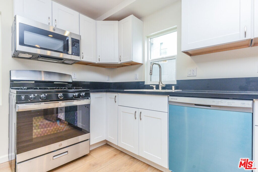 Renovated 1-Bed Apt (w/ in-unit Laundry & AC!!!) in Serene Santa Monica Courtyard Building in Serene Santa Monica Courtyard Building! resenting Unit B at 1851 Euclid Street, Santa Monica, a fully renovated 1-bedroom apartment within a unique and serene courtyard building just west of 14th Street and south of Michigan. This fantastic apartment features a spacious common area with an open/versatile layout, a well-equipped kitchen with stone countertops, ample storage, and stainless steel appliances (dishwasher, range, and fridge).The bedroom comfortably fits a king-size bed and furniture and includes a sizable closet. The bathroom is fully equipped and ready for use. Additional amenities include in-unit laundry hookups, air conditioning, hardwood flooring, and high-end finishes. Street permit parking is easily accessible. We have 1 parking space available for rent too! Inquire. The owner covers water, sewer, and trash expenses. MLS# 25628815