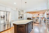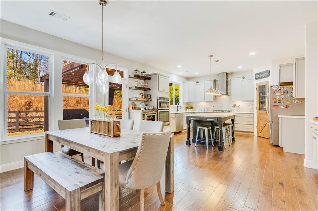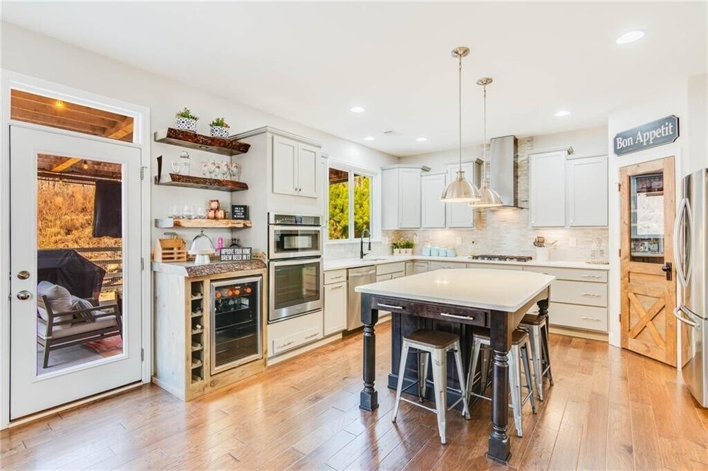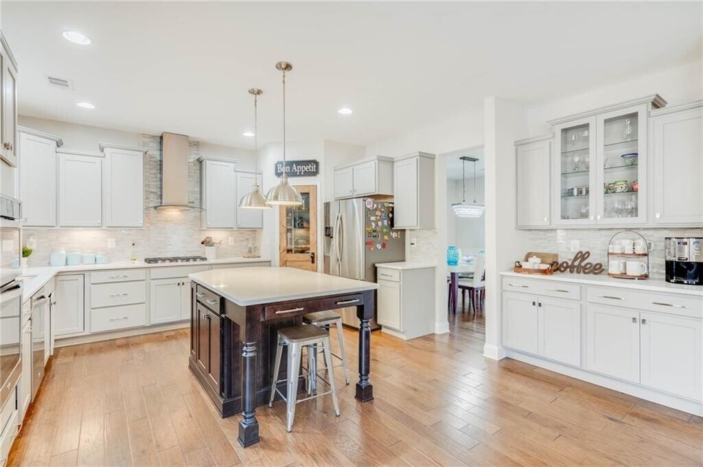 Standout craftsman in West Forsyth! Walk in to a wraparound staircase and vaulted ceilings in the foyer. French doors open to the office with a built in desk and shelving. Cedar beamed ceilings in the family room. Well designed kitchen with custom bar area,wine rack,and mini fridge. Quartz countertops,upgraded appliances,and large accented island with ample seating. Covered patio and private,fenced yard perfect for entertaining. Upstairs features a gorgeous owners suite and 3 large secondary bedrooms. Open concept floor plan with a great flow,must see!