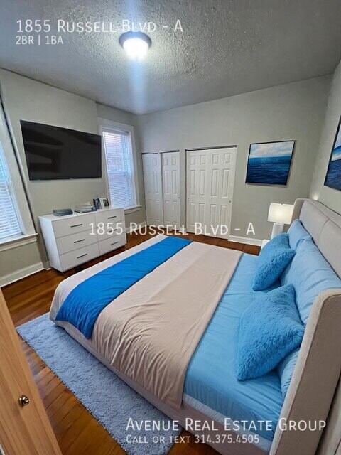 Welcome to 1855 Russell Blvd, Unit A, a charming top-floor residence in the heart of historic Soulard. This spacious 2-bedroom, 1-bath home boasts beautiful hardwood floors, soaring high ceilings, and an abundance of natural light throughout. Enjoy morning coffee or evening relaxation on your private front balcony overlooking the neighborhood. A rare highlight is the private 2-car garage (1 space available), offering convenience and secure parking—an uncommon feature in this sought-after area. The home’s prime location places you just steps from Soulard’s vibrant restaurants, shops, and nightlife, with easy access to major roadways for a quick commute. Blending character, comfort, and convenience, this Soulard gem is ready to welcome its next resident. Water, sewer, and trash are included in the rent. Up to two pets are allowed, with a maximum weight of 45 lbs each.Ac + Heat Assigned Parking