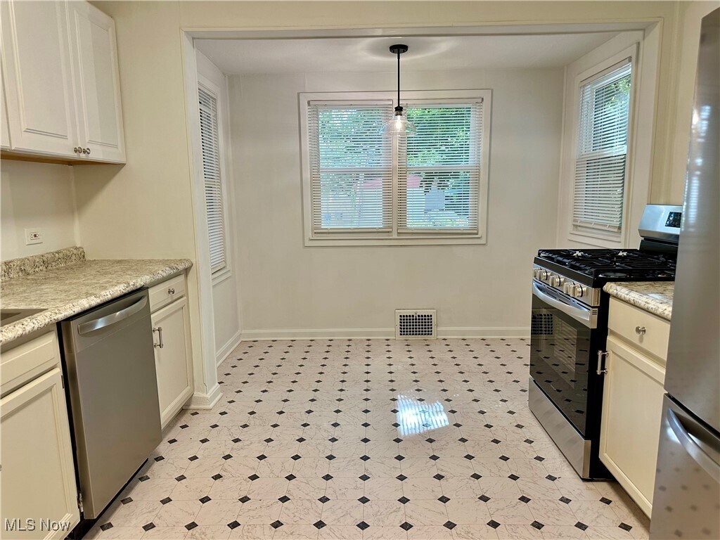 Here’s a trifecta rental –spacious unit,reasonable rate,great location. This is a first floor unit with large living and dining rooms,big kitchen,a spare room (office/den,etc) and two bedrooms. Refinished wood floors,replacement windows,while some original features of the house were maintained. Updated kitchen and bath with cabs,fixtures,counters and appliances. The furnace is newer,there is a full basement with laundry hook-ups for each unit to have separate machines. Street parking (there are spaces in front of the house). Located just two blocks from Gordon Square Arts District with theaters,eateries,shoppes,entertainment,bus lines,coffee,great restaurants and more. Further north on W 65th is the entrance tunnel to Edgewater Beach and Park as well as access to the metro parks paths that span the city and beyond. Also close are highway access to most of the major interstates. 1.0 mile to Edgewater Park,1.5 miles to W25th St and the West Side Market,2.8 miles to CLE Public Square and only 8.0 miles from Hopkins International Airport. Location…. YES! The space is ready for quick occupancy,security deposit = one month of rent,application,credit check and screening required at applicant’s cost,applicant(s) should have gross income of approx. $4,500/ mo. and good credit,one year lease or longer,tenant pays gas & electric,no smoking,no pets,no vouchers at this time. Please inquire online,calls or texts may not be received. Some notice for appointments needed.