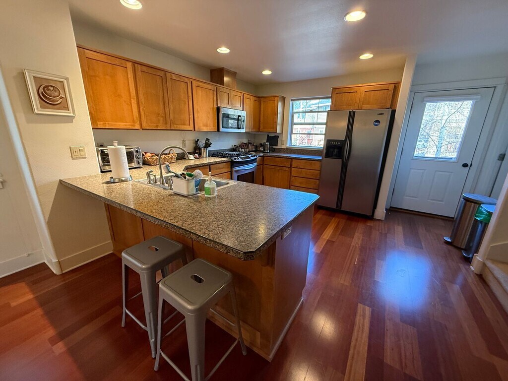 This beautiful 2 bed/2.5 bath townhome is in a fantastic location on Bend's westside convenient to restaurants, shops, COCC/OSU, Shevlin Park and so much more. The home features stainless steel appliances in the kitchen, two masters suites on the top floor as well as a spacious garage with lots of room for toys and vehicles. Washer/dryer included. One driveway parking spot included with garage. Tenant responsible for all utilities. Landscape maintenance provided by HOA. One-year initial lease term. Pets considered on case by case basis with owner approval and additional deposits. Additional fridge in the garage, a wall-mounted bike rack, a wall-mounted ski rack, and five shelving units are all included "as-is". Contact our office for information on showings! All of Mountain View Property Management properties are non-smoking. The rental listing, availability and security deposit amount are subject to change without notification. The information posted is deemed reliable, but not guaranteed. Professionally Managed by Mountain View Property Management Inc. Licensed in the State of Oregon. M.V.P.M. screening guidelines appear once the “Apply Now” tab has been selected. Please review them before submitting an application. Please do not disturb our tenants. Thank you.