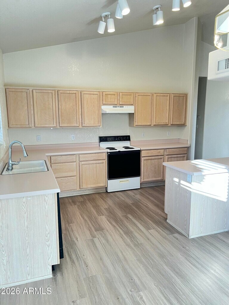 Beautiful home with a great South Tempe location in a lake community. Single level,open floor plan,spacious kitchen with lots of cabinets and counter space. Enjoy a breakfast room off the kitchen,newer vinyl plank flooring throughout,a covered patio,and a fully landscaped backyard. There's also a park and playground across the street. A washer,dryer,and refrigerator are included.