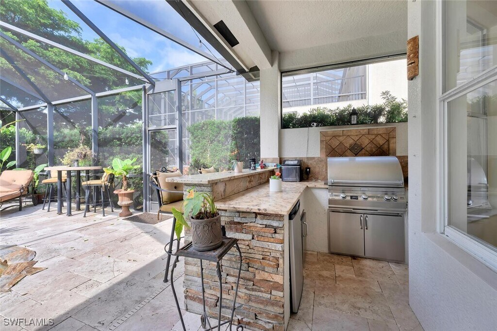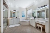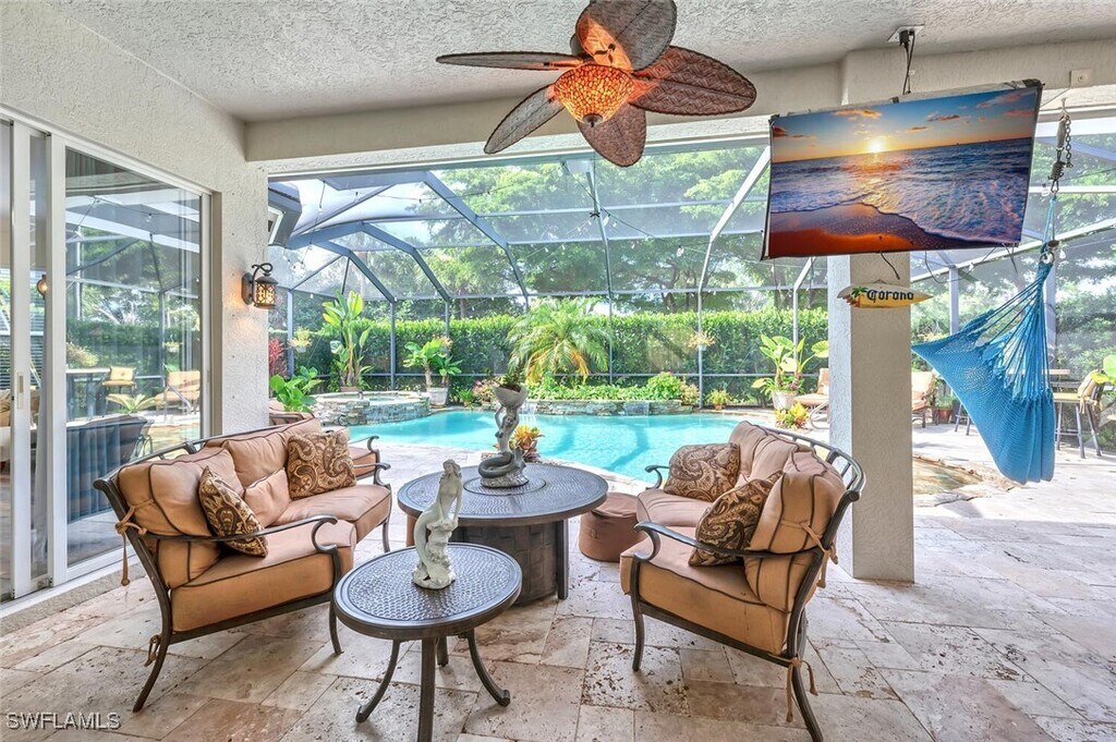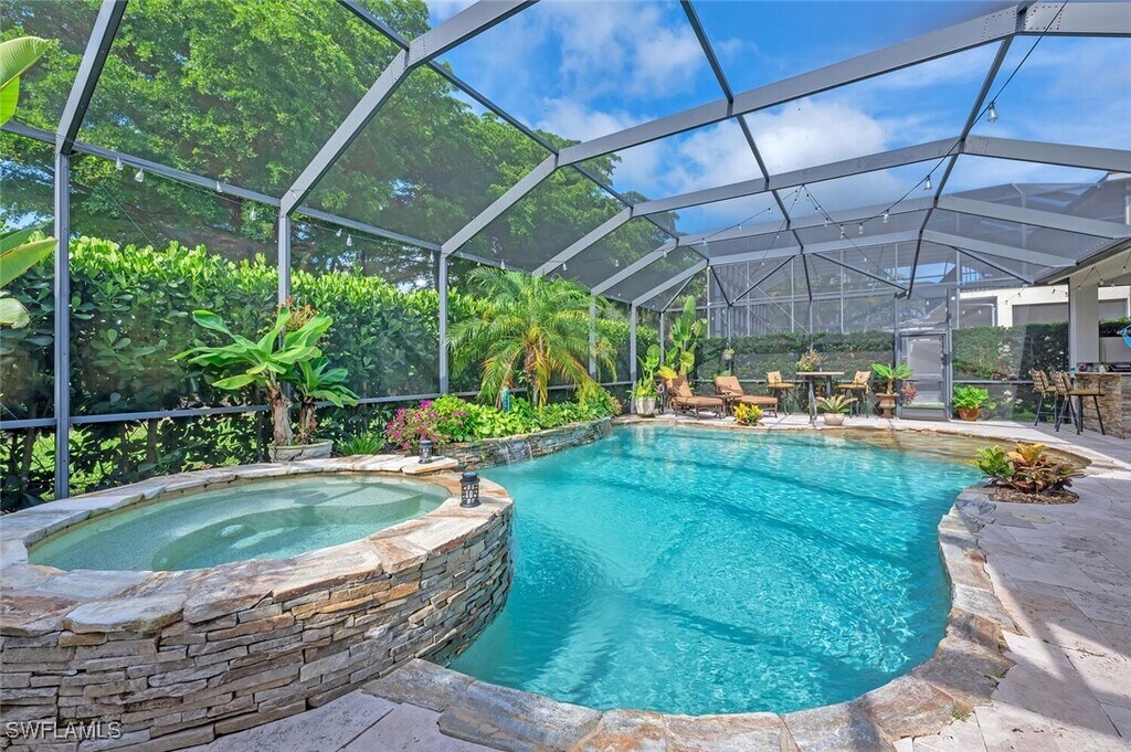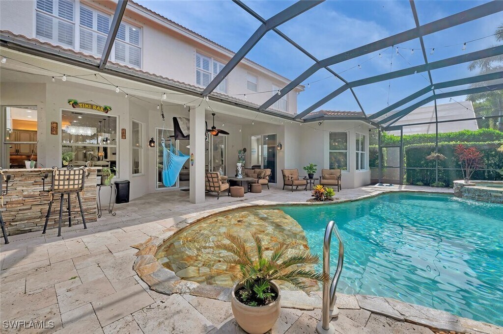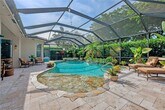 his spacious "Sapphire model" offers 4 Bedrooms,3.5 Baths,Loft,3 Car Garage. Through the custom double front doors,you are greeted by 20' ceilings in the living & dining rooms and a grande staircase. Primary ensuite on the main level,3 guest bedrooms & a spacious loft on the second level. The cook's kitchen features THERMADOR double wall ovens & cooktop,beverage cooler,double pantries,is open to the family room and out to the lanai. SMART HOME featuring smart lighting,locks,garage door,ceiling fans,thermostats,pool and spa heat,lights and bubbles.The lanai is a tropical oasis perfect for entertaining,featuring travertine decking,custom SALT WATER HEATED POOL with raised SPA,SUNSHELF & SUMMER KITCHEN. ROOF 2019,EXTERIOR PAINT 2020,HVAC 2019. "Club at Saturnia Grande" offers resort pool,hot tub,lap pool,kiddie pool,saunas,fitness center,billiards room,ball room,4 tennis courts,basketball court,and more! Low HOA fees include: guard gated entrance,landscaping,irrigation,alarm monitoring,cable TV with HD/DVR,high speed fiber optic internet. A RATED SCHOOLS,located minutes to shopping,dining,beaches,I-75 access.