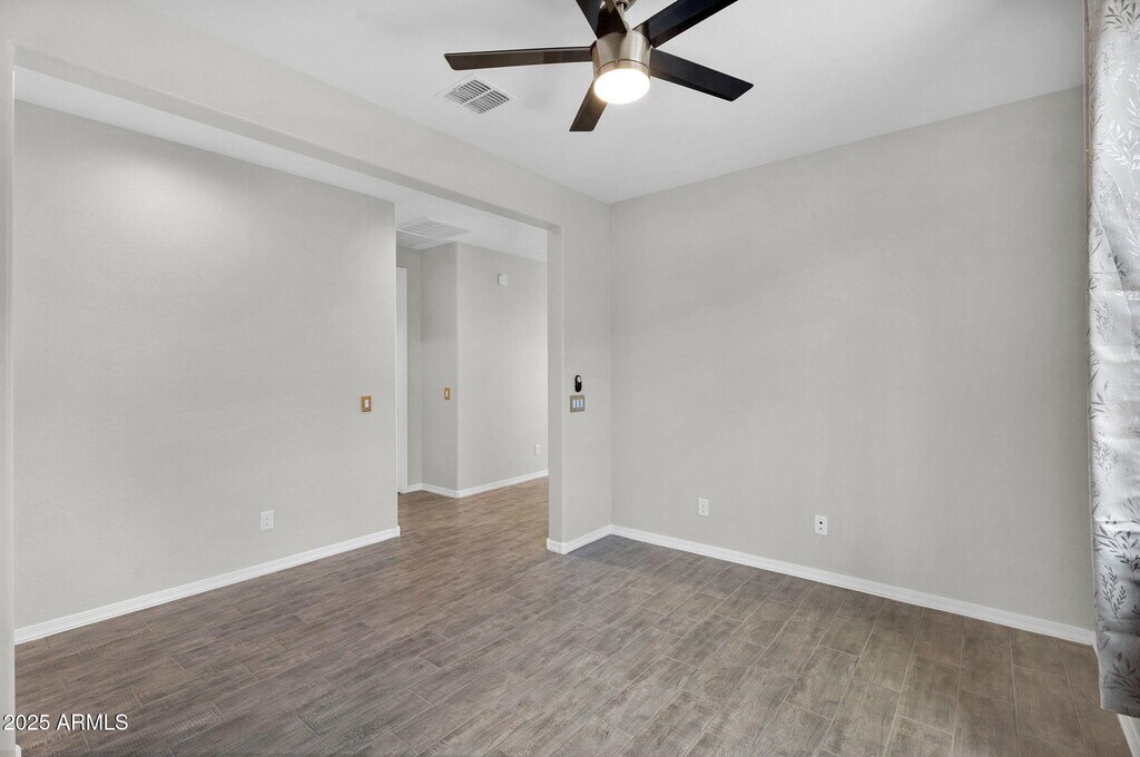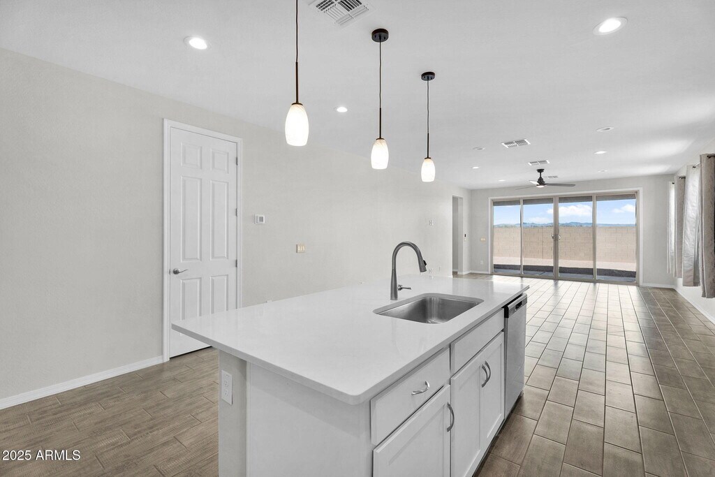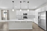 Richmond American's Emerald floor plan ready for move-in TODAY! This 3 bedroom/2 bathroom/1 flex room floor plan has an attached GUEST SUITE with its own bedroom,bathroom,living room,laundry closet,kitchenette,and private entrance from the side yard. Included features: a covered entry; a spacious great room with center-meet doors leading onto a covered patio; a dining nook; a thoughtfully designed kitchen boasting 42'' upper cabinets,quartz countertops,a center island and stainless-steel appliances,including a gas range; a convenient laundry; a lavish primary suite showcasing an oversized walk-in closet and a private bath. Conveniently located minutes from Fry's Marketplace and other dining options. bath. This home also has wood laminate flooring,cultured marble bathroom countertops,added windows,ceiling fan prewiring,front yard landscaping and a concrete-paver driveway and walkway