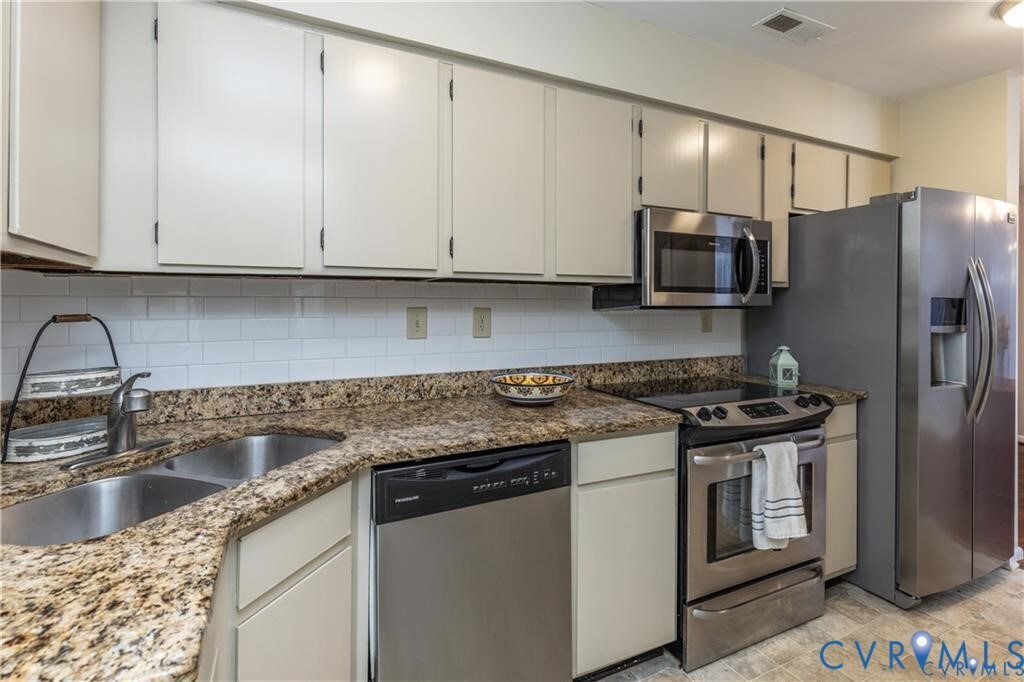 GET READY TO FALL IN LOVE! This lovely,light filled townhome features a FIRST FLOOR PRIMARY BEDROOM with wood floors,private bath with new luxury vinyl plank floors and granite countertops. The freshly painted interior features a soaring vaulted ceiling,gleaming parquet floors,wood burning fireplace and vinyl energy efficient windows. The working kitchen has been updated with granite and stainless appliances. NEW CARPET graces the stairs and bedrooms on the second floor with a full bath with granite and new luxury vinyl plank floors. Enjoy the patio garden with a walk-in storage space. NEW HEAT PUMP* CONDITIONED CRAWL SPACE* HOT WATER HEATER-THREE YEARS OLD. Amazing location with walking trails that lead to a small lake plus the Raintree swim and racquet club is just across the street. AVAILABLE IMMEDIATELY!