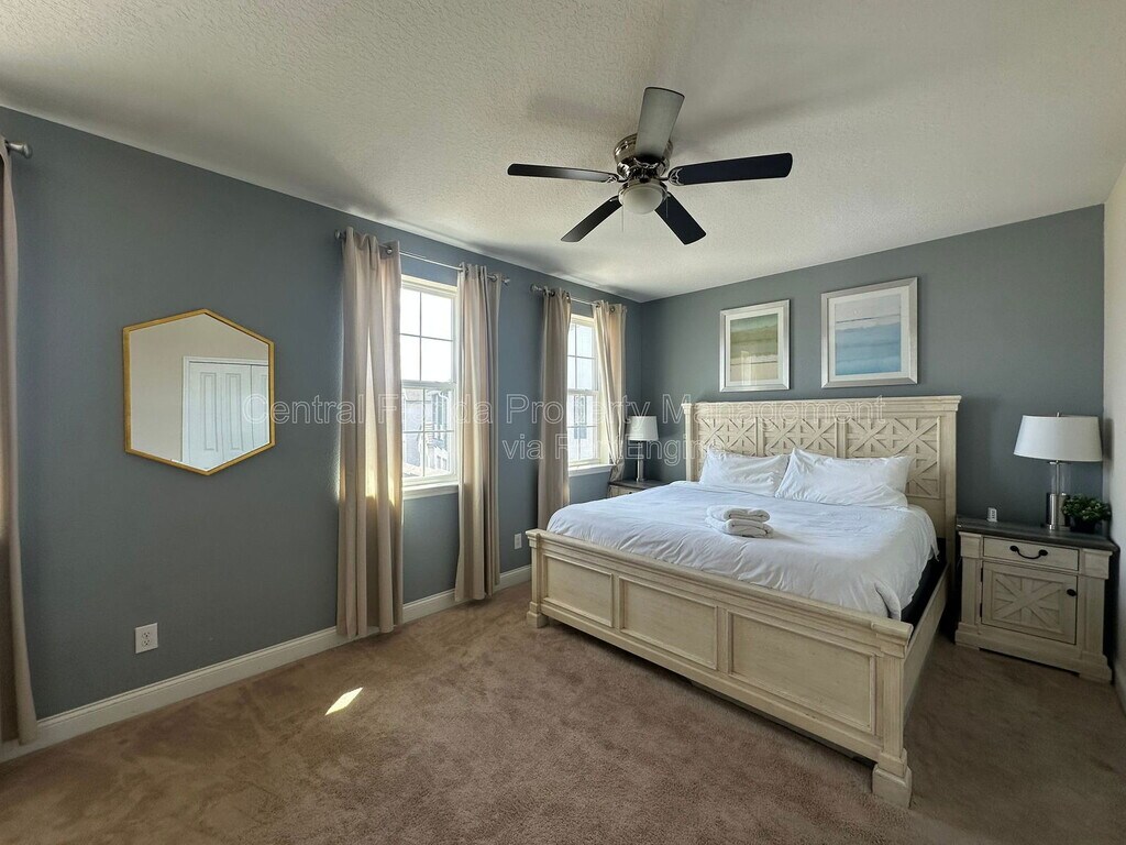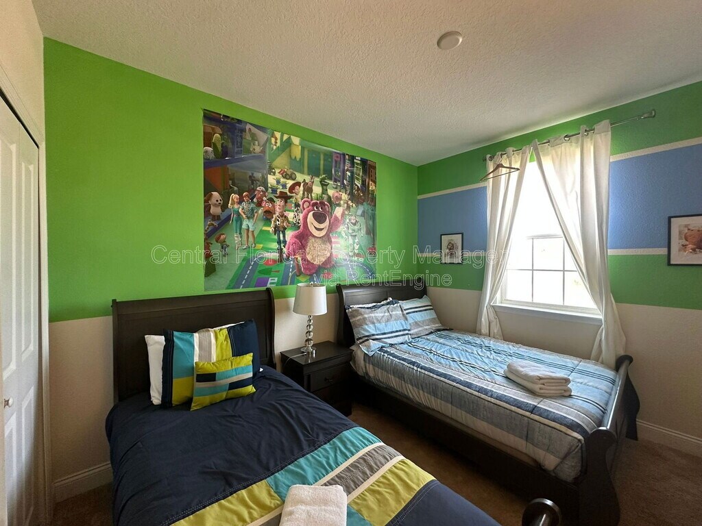 Welcome home! Experience ultimate comfort in this stunning 4-bedroom, 3.5-bath townhome at the desirable Festival Resort, located minutes from Disney. This modern, fully-equipped home features stainless steel appliances, a cozy kitchen nook, and a private screened pool with a convenient patio half-bath. The functional layout includes a 1st-floor bedroom with an en-suite, a 2nd-floor master suite with a king bed, two themed twin bedrooms, and a relaxing lounge area. Internet and cable are included. Act Now! and and move into this exceptional, resort-style property. All applicants are required to do a credit and background check. Renters insurance is required. By submitting your information on this page you consent to being contacted by the Property Manager and RentEngine via SMS, phone, or email.