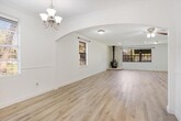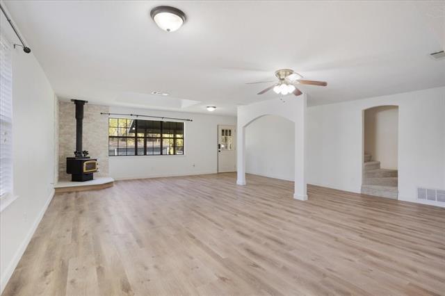 Come enjoy living the lake life! This home is located very close to Mill Creek Marina at Lake Texoma and features two bedrooms and two bathrooms on the main level and a cozy third bedroom and bath upstairs. The living area is very spacious and is open to the dining area. The stand alone wood burning stove will keep you warm on those cold winter nights. There is low maintenance vinyl plank flooring on the main level and carpet in the upstairs bedroom. The primary suite has a walk in shower, double vanity, walk in closet and utility area in the bathroom. The updated kitchen features stainless steel appliances and the refrigerator is included. The sunroom off the kitchen has plenty of windows to allow the natural light to shine in. Enjoy outdoor living on the one half acre lot with a fire pit and shade trees in the fenced back yard. Pets on a case by case basis.