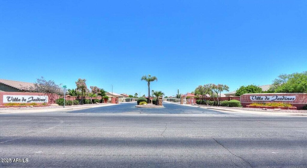 55+ gated community of Villa de Jardines. Immaculate 2-bed 2-bath home w/ Den. Beautifully maintained home featuring NEW exterior paint,vaulted ceilings in living area,stylish ceiling fans,and bright,kitchen w/ updated counters,and a large bay window overlooking the peaceful community. Spacious master suite offers a walk-in closet,and ensuite bathroom w/ double sinks. Additional highlights include brand-new carpet,updated flooring,water softener system,and water filter system for added convenience. The front and backyard feature attractive,low-maintenance landscape. Villa de Jardines offers resort-style amenities,including a clubhouse,heated pool,and heated spa,making this home the perfect combination of comfort & convenience.
