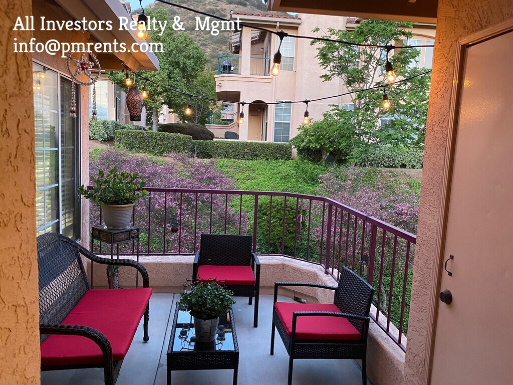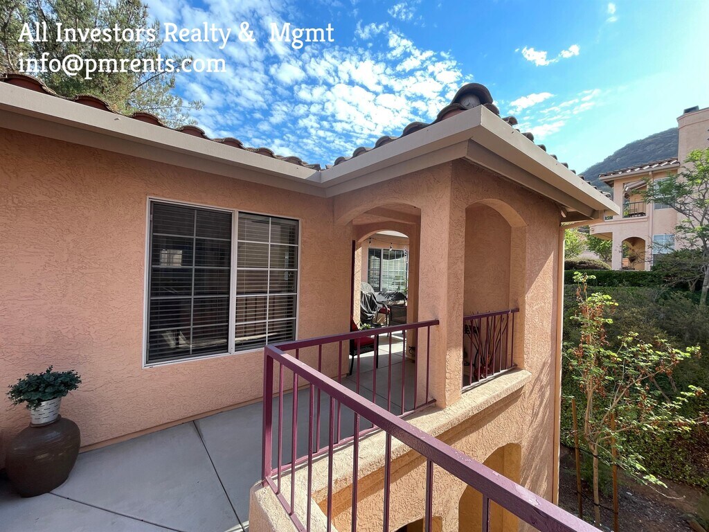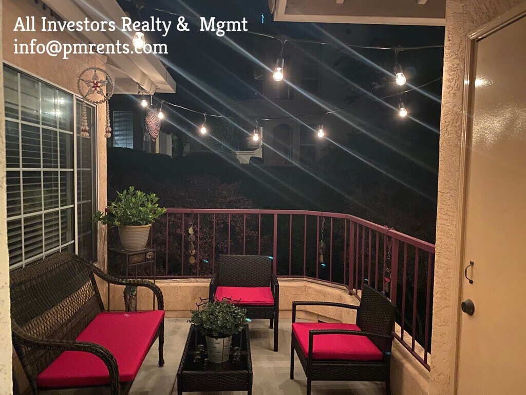 **************PLEASE READ ENTIRE AD BEFORE INQUIRING****** ALL INQUIRES TO BE VIA EMAIL ONLY SO THAT WE CAN MAKE SURE THIS IS A GOOD FIT PRIOR TO SCHEDULING AN APPOINTMENT. SIMPLY CLICK ON THE "REQUEST A SHOWING" LINK OR EMAIL US DIRECTLY AT . NO PHONE INQUIRIES PLEASE. Resort Style Living in the desirable and gated Vista Del Lago! This beautiful top floor unit features three bedrooms and two baths in 1,222 square feet. This unit is tucked away in the corner and backs to open space for your privacy. Enjoy gorgeous solid surface flooring, upgraded granite counters in the kitchen and baths and warm colors on the walls. Tons of natural light brighten this home. The large living room features a beautiful fireplace for those cozy winter nights. The private balcony is a wonderful place to sit outside and have your morning coffee while enjoying the views of the open space. This unit includes a refrigerator, washer, dryer and Central AC for your convenience. Along with a detached single car garage, there is plenty of parking. The resort like amenities include two swimming pools, an additional lap pool, two spas, gym, meeting room, pool, billiards, ping pong and tennis! These grounds are beautiful and a great place to take in the outdoors. This is a highly desirable complex and these rarely available rentals go quickly. Water and Trash Included. Easy access to Interstate 15, shopping, dinning, retail stores and more! Contact All Investors Realty and Management today at I N F O @ P M R E N T S . C O M today for additional information. All inquiries by email please so we can send a property questionnaire. Equal Housing Opportunity. CABRE#02148089. Non smokers of any products only. Strictly Enforced. Advertised rate subject to review of credit, background and other screening items and therefore subject to change. Resort Style Living in the desirable and gated Bernardo Vista Del Lago! This beautiful top floor home features three bedrooms and two baths in 1,222 square feet. This unit is tucked away in the corner and backs to open space for your privacy. Enjoy gorgeous solid surface flooring, upgraded granite counters in the kitchen and baths and warm colors on the walls. Tons of natural light brighten this home. The large living room features a beautiful fireplace for those cozy winter nights. The private balcony is a wonderful place to sit outside and have your morning coffee while enjoying the views of the open space. This unit includes a refrigerator, washer, dryer and Central AC for your convenience. Along with a detached single car garage, there is plenty of parking. The resort like amenities include two swimming pools, an additional lap pool, two spas, gym, meeting room, pool, billiards, ping pong, multiple tennis courts and car charging stations! These grounds are beautiful and a great place to take in the outdoors. This is a highly desirable complex and these rarely available rentals go quickly. Water and Trash Included. Easy access to Interstate 15, shopping, dinning, retail stores and more! Contact All Investors Realty and Management today at I N F O @ P M R E N T S . C O M today for additional information. All inquiries by email please so we can send a property questionnaire. Equal Housing Opportunity. CABRE#02148089. Non smokers of any products only. Strictly Enforced. Advertised rate subject to review of credit, background and other screening items and therefore subject to change.