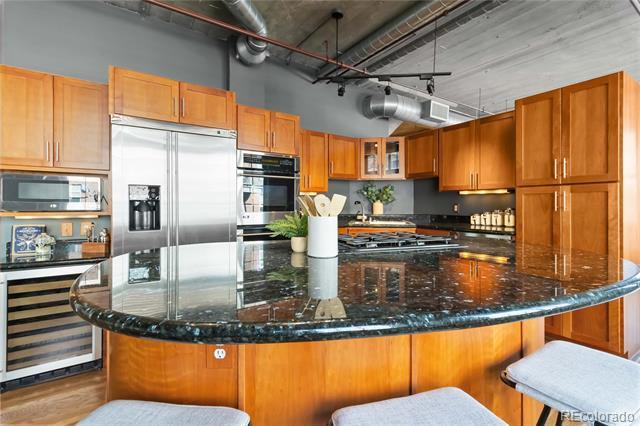 Welcome to this stunning industrial chic loft, perfectly situated in the heart of LoDo. With a prime downtown location, you're just seconds away from the vibrant dining and entertainment options at McGregor Square, Union Station, and the Dairy Block. Located one block from Coors field and within walking distance to Empower Field and Ball Arena. The open-concept living space is flooded with natural light through expansive windows, creating a bright, inviting atmosphere. Double glass doors lead to a spacious, covered balcony that's plumbed for gas perfect for outdoor cooking or relaxing after a hard days work. The generous primary suite boasts a large walk-in closet and a beautifully designed bath, offering a private retreat. The second bedroom area can be sectioned off for a bedroom or office, or left open. The Kitchen consists of double ovens, gas range, 50 bottle wine fridge, microwave all in a natural cherry cabinetry. This unique loft combines the best of urban living with a touch of creative potential, making it the perfect place to call home. Don't miss out on the chance to make this one-of-a-kind space your own! Condominium MLS# 9504034