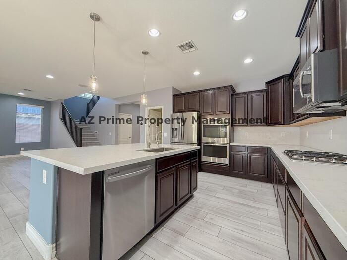 Beautiful 4/2.5 Goodyear House! This stunning 4-bedroom, 2.5 bath residence offers stylish living in the desirable Las Brisas HOA community. The home features tile flooring, quartz countertops, a modern backsplash, and a spacious great room. The master bedroom has an enclosed bath and an oversized walk-in closet. The split layout includes an upstairs laundry near three bedrooms a downstairs den/bedroom, and a spacious loft perfect for work or play. Outdoor living shines with a private pool (heater/cooler), synthetic turf, RV gate, and extended covered patio with sunshades - perfect for year-round enjoyment. With eye-catching stone accents, a 2-car garage, and proximity to shopping, dining, and top schools, this property blends comfort, convenience, and curb appeal in one of Goodyear' most sought-after neighborhoods. Visit for additional pictures, videos, rental lease terms, and how to view property in person! *The information contained in this ad is accurate to the best of our knowledge. AZ Prime Property Management is not responsible for any errors or omissions in the wording or content of this information* Federal Occupancy Guidelines followed: Max 2 per bedroom + 1 additional occupant; Max 2 per studio. Please get in touch with AZ Prime Property Management for available move-in dates. Our Rental Homes Reflected are Rented in the Current Conditions at the Time of Viewing. AZ Prime Property Management Equal Opportunity Housing License #LC665152000 Designated Broker: Bonnie Burns #BR109023000 -Online Applications are located at AZ Prime Property Management under the "Online Applications" tab. -Affordable Renter's Insurance Thru AssetProtect. AZ Prime Property Management does not advertise on Craigslist or Facebook. This property allows self guided viewing without an appointment. Contact for details.