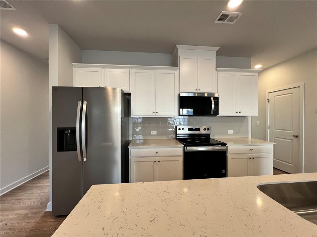 Brand new,fabulous townhome waiting for you! This home features 3 bedrooms and 2.5 bathrooms,with everything included—Brand NEW REFRIGERATOR,WASHER,DRYER,& TRASH SERVICE. The spacious,open floor plan includes white kitchen cabinets and white quartz countertops,complemented by stainless steel appliances. The large island with a one-bowl sink provides a perfect spot for bar stools,and a generous walk-in pantry offers ample storage. Recessed lighting throughout the home creates a bright,modern atmosphere. The family room features an electric fireplace,perfect for cozy evenings. Good size master bedroom boasts a luxurious master bath with double vanities,a spacious shower,and a linen closet. The secondary bedrooms are also well-sized,each with walk-in closets. Community amenities include a large swimming pool,providing a great space for relaxation and recreation. Conveniently located with easy access to I-85 and 316,Mall of GA,& Restaurants,Shopping !