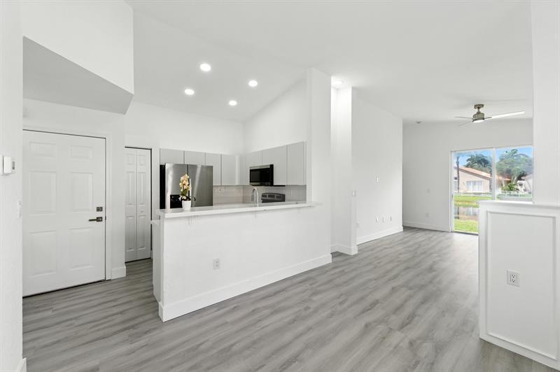 LIKE NEW! Welcome to this beautifully renovated corner villa located in the sought-after Grand Key community at Sunset Lakes. Featuring a prime location and serene lake views, this move-in-ready home offers the perfect blend of modern comfort and convenience. Step inside to find laminate wood flooring throughout, complemented by brand-new appliances, updated bathrooms, and white kitchen with quartz countertops. Residents also enjoy access to the exclusive Sunset Lakes Clubhouse. This corner unit offers exceptional privacy and natural light, plus easy access to A-rated schools, Publix, parks, dining, and major highways. This villa truly has it all. Don’t miss this rare opportunity — one story with one car garage! vacant and easy to show!