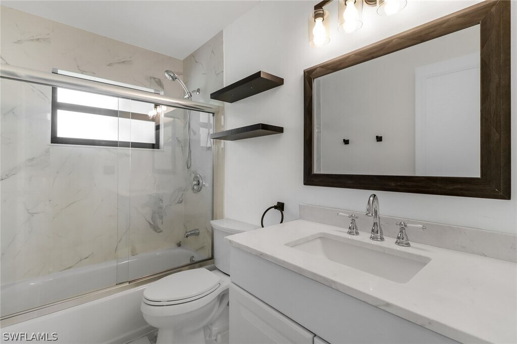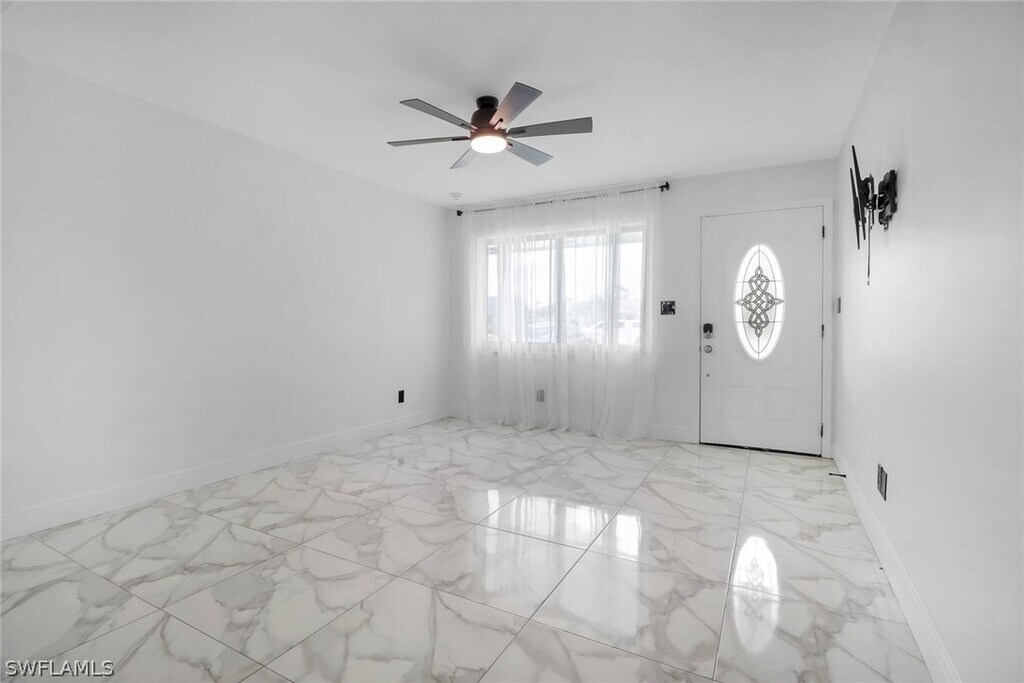 Beautifully redone & ready for Annual Rental in San Carlos Park! This lovely home offers 3 beds/1 bath,granite/quartz countertops throughout,1 garage space & 1 carport with a completely fenced yard & an enclosed oversized lanai. Roof & AC are newer,as well as Impact Resistant glass. It's been freshly painted with new interior lighting,hardware,closet storage shelving & more! On the exterior you'll find new outdoor lighting & AC condenser. The kitchen boasts stainless steel appliances,neutral backsplash,"food/beverage-pass through" & room for your own washer/dryer set up on the lanai. Located within minutes from I-75,shopping,schools & restaurants. FGCU,Miromar Outlets and Gulf Coast Town Center are nearby as well!