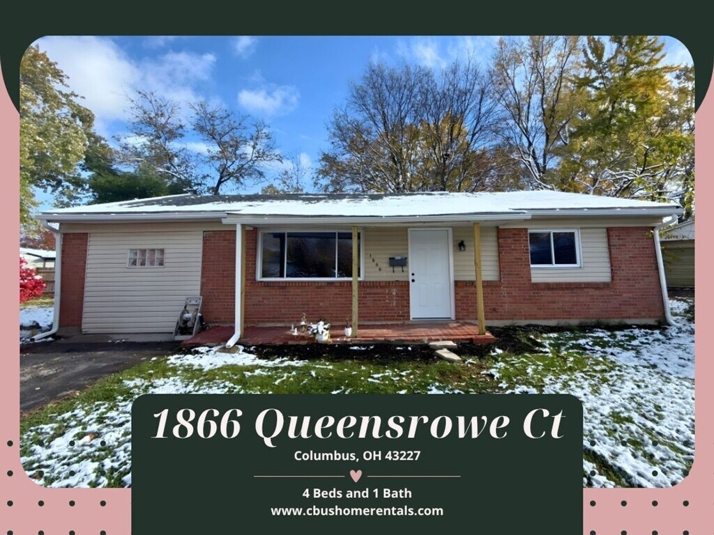 Welcome to 1866 Queensrowe Ct, a beautifully refreshed 4-bedroom, 1-bath ranch nestled in the quiet and established Berwyn community of Columbus. This home perfectly blends comfort, modern updates, and convenience, all for only $1,715/month! Step inside to a bright, open layout featuring freshly painted interiors, a fully updated kitchen with new countertops and modern cabinetry, and a refreshed full bath with contemporary finishes. The spacious living areas are perfect for entertaining or unwinding, while the converted garage with complete with heating and cooling adds valuable bonus space ideal for a home office, recreation area, or additional living space. Enjoy peace of mind with new interior and exterior doors, newer A/C, and a newer roof already in place. Outside, relax on the charming front porch or enjoy the serenity of the quiet cul-de-sac location. Don’t miss your chance to call this move-in-ready home yours! Contact Lisa today at to schedule your private showing. --- Exclusive Resident Perks Include: ?? Path to Homeownership Program – Toward your down payment on this home or a future home managed by us that qualifies. ?? Optional Resident Benefit Package (RBP) – Unlock premium benefits like renters insurance enrollment, credit building, air filter delivery, pest control, exclusive resident rewards, and more! PREQUALIFICATIONS -3x rent in gross income -Minimum credit score of 500 -No evictions in the past 5 years -No balances due to previous landlords -No felonies in the past 5 years -Pass full national credit & criminal background check -Must have renter insurance or will enroll in renter insurance upon moving in