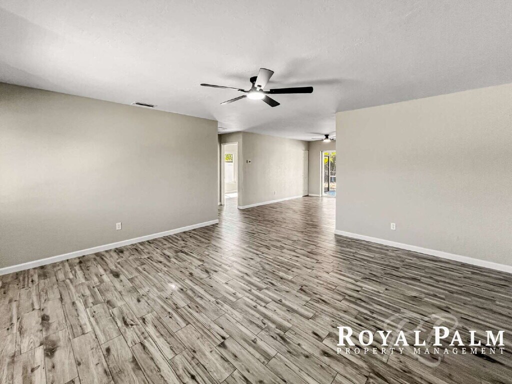 $500 off your first month's rent if you apply by April 15th. Yes, really. Keep reading. Look, we could write another listing that says "cozy" and "move-in ready" but you've read those before and you're still scrolling. So let's try honesty. This place has trees. A lot of them. And if you've spent any time in Florida, you know that shade in April is basically a personality trait. This 2-bedroom, 1-bathroom duplex in Fort Myers is tucked among the kind of greenery that makes your friends ask "wait, where do you even live?" Fresh paint, brand new ceiling fans (yes, including the lanai, we thought of everything), in-unit washer and dryer, and a layout that doesn't require a GPS to navigate. It's simple. It works. You'll like it. But the backyard? That's where spring actually lives. Fully fenced for privacy, with the property extending all the way to the tree line, which means you have more outdoor space than you'll know what to do with. Plant something. Host a cookout. Finally commit to that morning coffee outside ritual you pin on Pinterest every March and never actually do. There's even a storage shed, because your new garden era is going to need somewhere to put all the tools you're about to buy. Spring in Southwest Florida doesn't wait around. Neither will this one. Minutes to shopping, dining, parks, and major roads. Miles away from feeling like everyone else. Schedule your showing. The trees just bloomed and they're ready for you. Utilities: Tenant is responsible for all utilities. Pet Policy: We warmly welcome your furry companions, with the exception of aggressive or dangerous dog breeds. Review full details on our pet policy here: Schedule a Showing: Experience the allure of this property firsthand by scheduling a showing through our convenient online platform: . Application Instructions: Preparing your application is straightforward: 1. Gather all required documents (refer to application requirements). 2. Visit and click "Apply Now" 3. Complete the user-friendly online application form 4. Submit the Application Fee securely online Please ensure your application is submitted with all necessary documents as outlined in our application requirements. Complete applications with all required documentation will receive prompt processing. Incomplete submissions unfortunately cannot be processed. Your attention to detail is appreciated! Qualifications & Requirements: To ensure a seamless application process, please meet the following criteria: - Proof of income for the past 4 weeks - Minimum income of three times the monthly rent - Valid identification copies - Comprehensive credit, criminal, and eviction screenings conducted - Application fee of $75 per adult aged 18 and over (online payment) - Security deposit equivalent to one month's rent (standard approval; special conditions pending owner's approval) - Properties under association management require additional association application(s) with potential associated fees - Enjoy the benefits of our resident benefits package for $45.00 - Upon application approval, a one-time lease administration fee of $125 applies For an extensive list of requirements, please visit: . Connect with Us: Royal Palm Property Management Inc. 813 Lake McGregor Dr, Fort Myers, FL 33919 Phone: Please note that all information provided is considered reliable but not guaranteed and is subject to change.