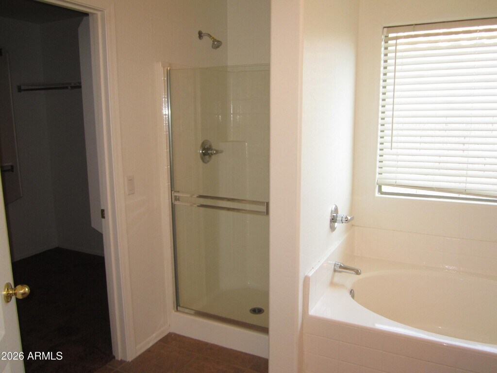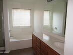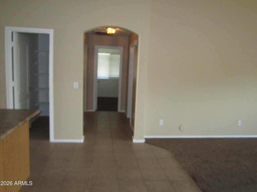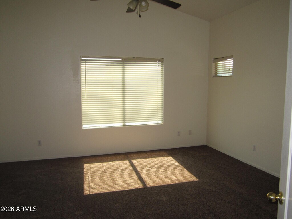 Single level 4 bedroom,2 bath home offering 1,931 sq ft in a Maricopa lake community. Vaulted ceilings create an open feel with a formal living area and separate family room for flexible use. Kitchen includes a walk in pantry and refrigerator. Split floor plan includes a Jack and Jill bathroom connecting secondary bedrooms. Primary suite offers privacy and comfortable space. Refrigerator included.