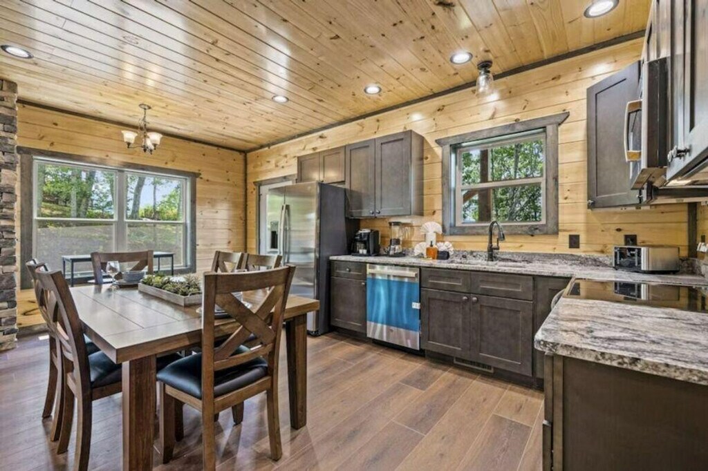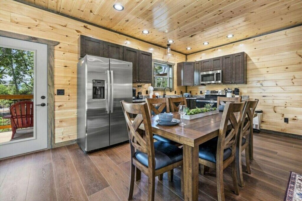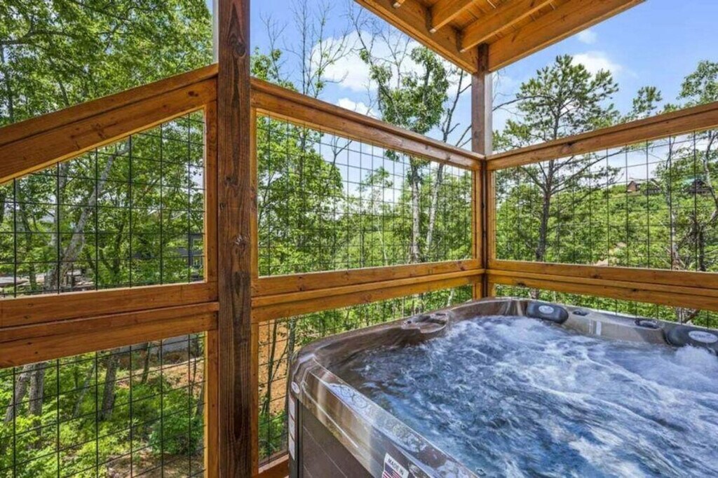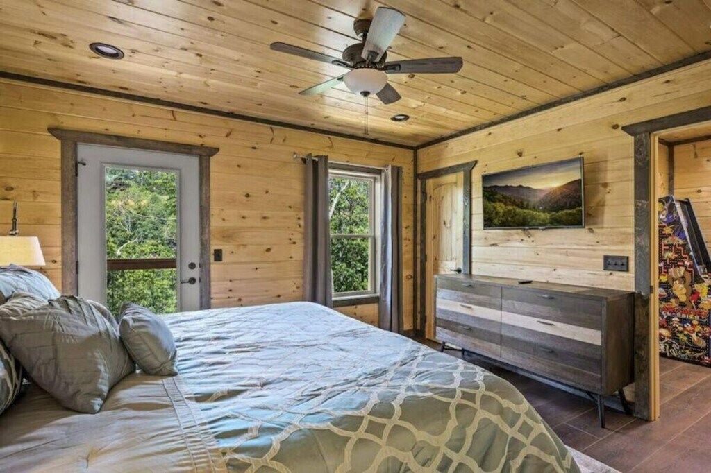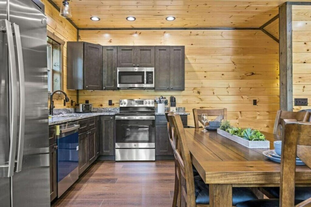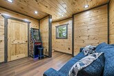 Feel at home in "Moonlight Ridge," a newly built 2-bedroom cabin that sleeps 8, offering cozy cabin charm and enchanting wooded views for an unforgettable vacation experience in the Smoky Mountains. This cabin offers modern amenities and entertainment options, including a fully furnished kitchen, fireplace, arcade game, and Wi-Fi. The fully equipped kitchen features a full-sized refrigerator, dishwasher, stove, microwave, cookware, dishes, and silverware. Enjoy the open living room with a gas fireplace, large flat-screen TV, comfortable seating, central heating, and air conditioning. A full-sized washer and dryer, complimentary starter toiletries, linens, and towels are also included. Enjoy the private hot tub and spacious decks with comfortable seating. Free on-site parking is available for 3–4 vehicles. Nestled amidst the tranquil embrace of the woods, "Moonlight Ridge" offers a serene escape. Located in a natural mountain environment where wildlife, including bears, may be seen, the cabin is in a private setting with easy access to area attractions such as Dolly Parton’s Stampede (3.8 miles), The Old Mill Restaurant (3.9 miles), and Pigeon Forge Factory Outlet Mall (5.1 miles). The maximum occupancy is 8 guests. Adult renters must be over the age of 25, and guests under 21 must be accompanied by parents or adults over 25 who make up the majority of the party. Any extra people brought to the cabin will result in an extra charge of $500 and immediate removal with no refund. Guest late check out is billed at $50/hour rounded up every 30 minutes. Smoking tobacco, marijuana, or other substances inside is a $500 fee. As you make your way to the cabin and travel around the area, please keep in mind that some of the mountain roads can be steep and winding. Please store food and trash properly due to bears being indigenous to the area. [SI]