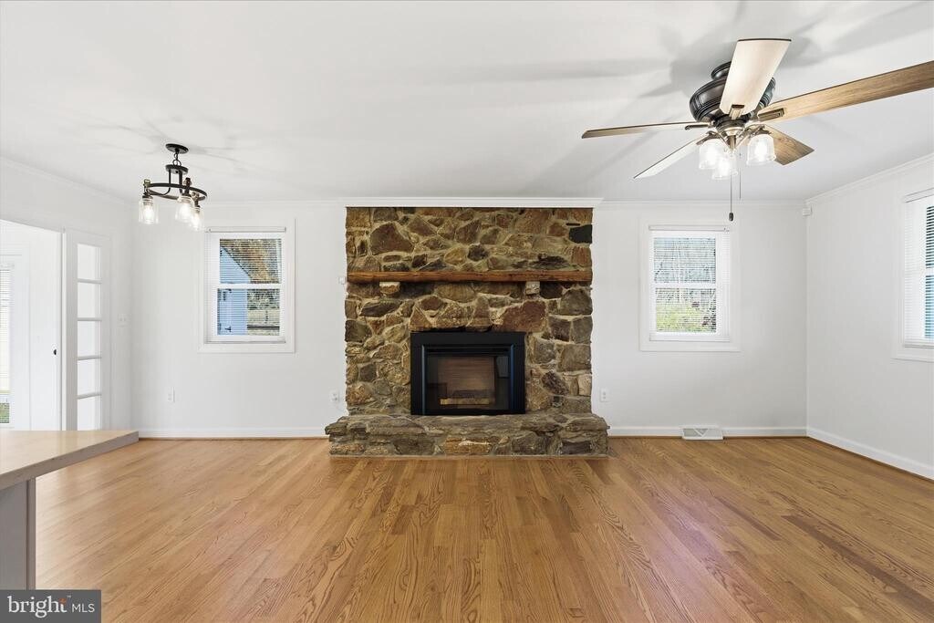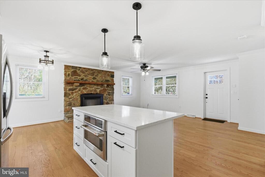 Welcome to this privately gated 3-bedroom, 2-bath ranch home in the heart of Purcellville—freshly updated, beautifully bright, and set on a peaceful 0.68-acre lot with wide-open views. Step inside to a stunning open-concept main living area highlighted by refinished hardwood floors, abundant natural light, and a striking floor-to-ceiling stone fireplace that anchors the space with warmth and character. The completely renovated kitchen is the star of the home, featuring white shaker cabinetry, quartz countertops, a large center island, stainless steel appliances, and modern lighting — perfect for cooking, gathering, and entertaining. Just off the kitchen, French doors lead to a sunny bonus room with wraparound windows, ideal for a home office, sitting room, or play space. All three bedrooms are generously sized, and both bathrooms have been beautifully updated with marble-style tile, modern vanities, brushed-gold fixtures, and contemporary lighting, giving the home a clean, upscale feel throughout. A conveniently located stacked washer/dryer completes the interior layout. Outside, the property continues to shine. The level yard offers space to enjoy the outdoors, and the custom 12x12 storage shed provides ample room to keep belongings organized, keeping your living areas clutter-free. Even better, lawn maintenance is included in the lease, offering all the benefits of a large lot without the upkeep. There are security "video only" cameras on the property. Located just minutes from downtown Purcellville, Route 7, shops, dining, wineries, and top-rated Loudoun County schools, this gated home delivers the perfect blend of privacy, convenience, and modern comfort. Move-in ready and beautifully updated — don’t miss this rare rental opportunity in Purcellville. Apply at