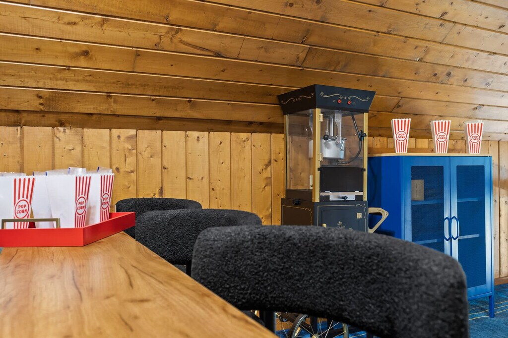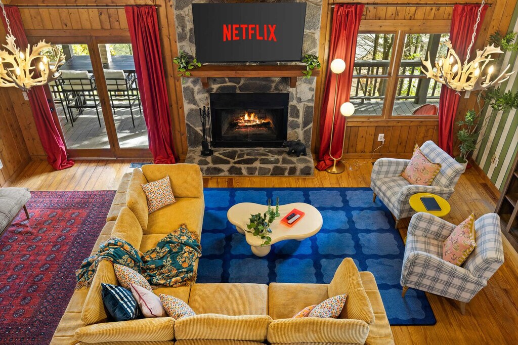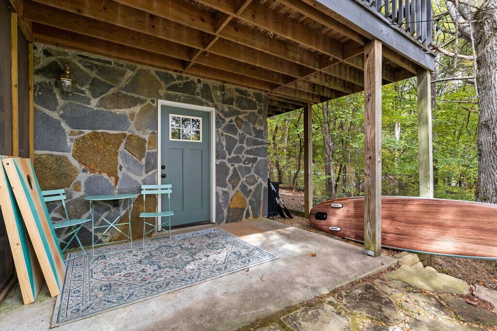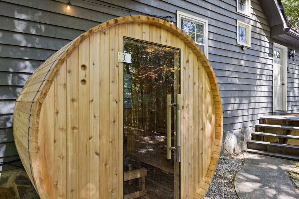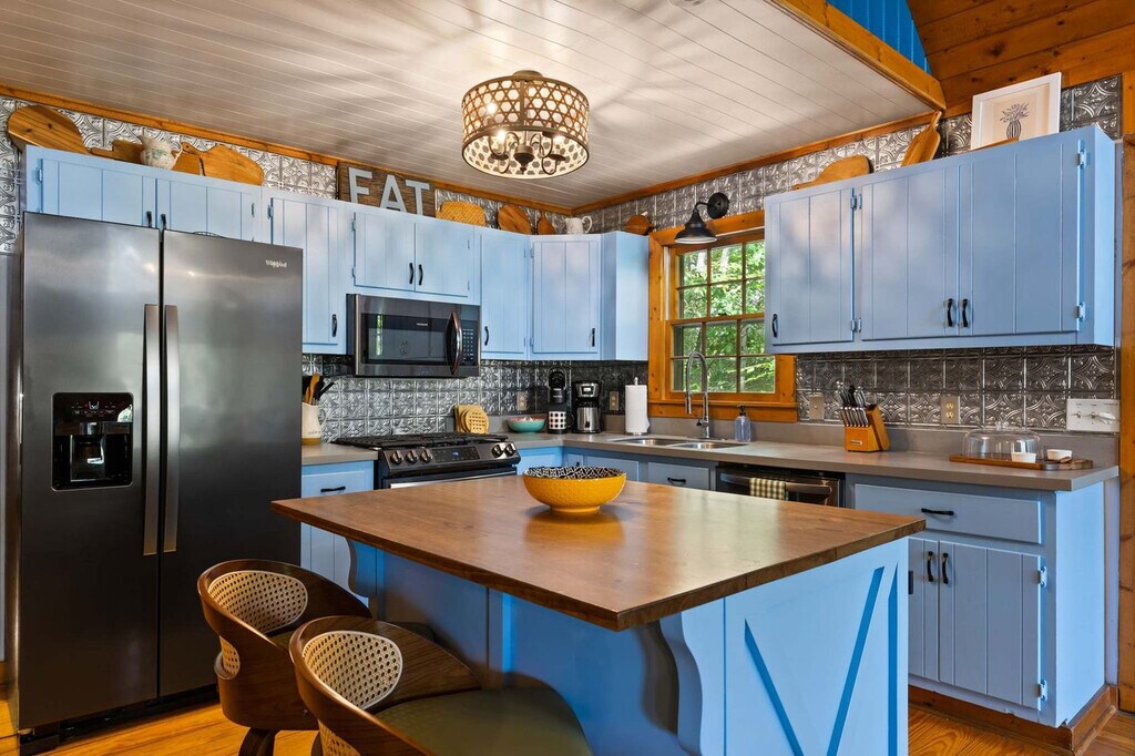 Feel at home in this stunning 4-bedroom mountain cabin in Blue Ridge, GA, that comfortably accommodates up to 14 guests, making it ideal for families, friends, or multi-family vacations! This home perfectly blends rustic charm with modern comfort. Step inside to find soaring ceilings, cozy living spaces, and panoramic views of the surrounding nature. Gather around the stone fireplace, cook up a feast in the fully stocked kitchen with high-end stainless appliances, a large refrigerator, ample cabinetry and cooking space, and a coffee maker with Keurig and drip options, or head out to the deck. The fun continues outdoors with a hot tub, fire pit, kids playground, private sauna, private small dock, outdoor patio/dining, BBQ grill, giant Jenga, corn hole, kayaks, movie theater, and game room with a pool table, arcade games, poker, and darts. Up to 2 dogs are allowed for $125 per stay and long-term stays are available upon request. Nearby attractions include the Blue Ridge Scenic Railway (1.8 miles), Mercier Orchards (3.2 miles), Toccoa River Swinging Bridge (14 miles), Long Creek Falls (15 miles), and Blue Ridge Adventure Park (2.5 miles). Restaurants include The Black Sheep Restaurant (1.8 miles), Harvest on Main (1.8 miles), Chester Brunnenmeyer’s Bar & Grill (1.9 miles), Southern Charm Restaurant (1.7 miles), and Toccoa Riverside Restaurant (10 miles). Renting a car is a convenient option to explore the area. Check-in is at 4pm and check-out is at 10am. No parties are allowed and violations may result in immediate termination of the stay. [SI]