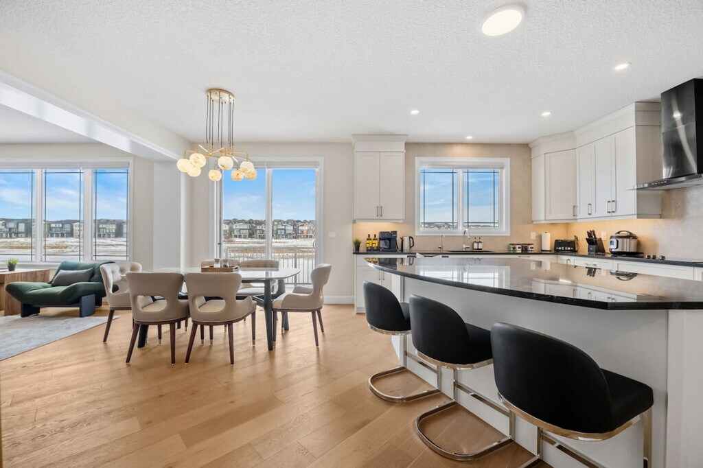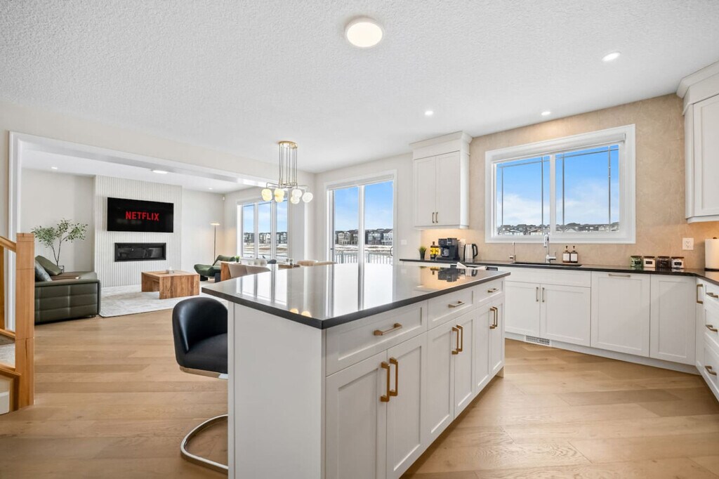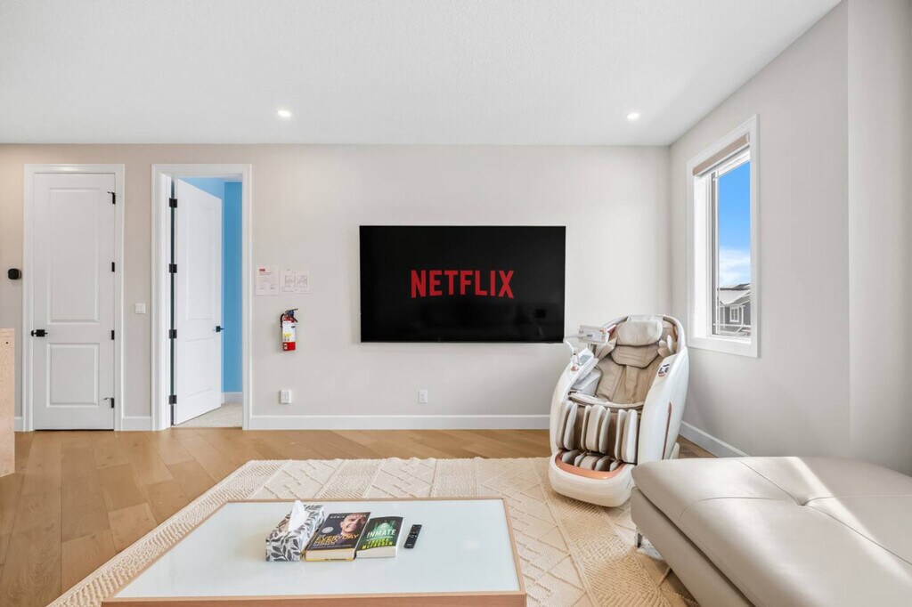 The advertised rate of C$3,296/month is the lowest available price, based on a 30 day(s) stay with a move-in date of March 6, 2026. Rates vary depending on the duration of stay, season, and other parameters. For exact pricing and additional pricing components, please visit our website and enter your desired move-in and move-out dates. The rate is applicable when billed upfront; it can be higher if billed in multiple payments. Feel at home in this Carringford View home, nestled in the sought-after Carrington community of NW Calgary. This home offers a serene stay with convenient access to the very best of Calgary and the Rockies. This home features two living rooms, one with a massage chair and an 85" smart TV with Netflix. The kitchen is equipped with stainless steel and custom appliances, including a 4-burner stove, oven, microwave, refrigerator, freezer, and dishwasher. Complimentary paper towels, coffee, tea, and a Brita are provided. There is also an in-unit washer and dryer with detergent provided. This home offers a 2-car garage with a Tesla electric charger. Optional luxury upgrades are available for an additional fee, including a National Park entry upgrade, welcome basket, birthday decor package, romantic wine & flower package, spa at home package, movie night upgrade, Christmas tree & holiday decor, Halloween decor & pumpkin carving package, winter cozy package, beer tasting kit, diffuser & aroma set, additional bedding & sleeping arrangements, and grocery pre-stocking service. Located in one of Calgary's newest and fastest-growing NW communities, this home is near scenic ponds, walking paths, and green spaces. It is conveniently located near major bus routes with easy access to Calgary Transit, connecting you to downtown and beyond. It is also located 5 minutes to Carrington Ponds & Pathways, 10 minutes to Sage Hill Crossing (Shopping & Dining), 10 minutes to Stoney Trail, 15 minutes to Calgary International Airport (YYC), 20 minutes to CrossIron Mills, 25 minutes to Downtown Calgary, 25 minutes to SAIT, 28 minutes to University of Calgary, 30 minutes to Calgary Zoo, 30 minutes to TELUS Spark Science Centre, 35 minutes to WinSport (Canada Olympic Park), 40 minutes to Heritage Park Historical Village, and 1 hour 15 minutes to Banff National Park. A $250CAD fine will be charged if smoking occurs with the migration of smoke or smell of smoke from the unit. No parties, drugs, excessive drinking, or loud music are allowed. Quiet hours are from 10 pm to 7 am. One complaint is a warning, and the second complaint is an eviction. Keep noise under 85db, as there is a noise detector. [SI]