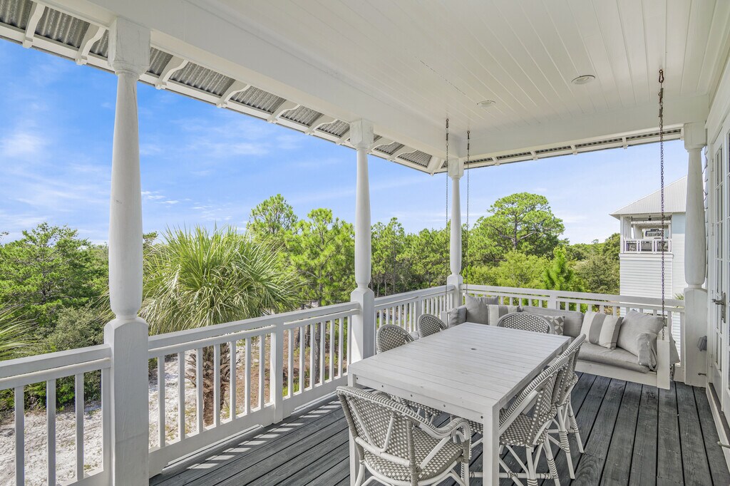 A truly exceptional home with views of the Gulf of Mexico offered for a long-term rental lease. This fully furnished and beautifully decorated french-inspired home has been featured in coastal magazines. Upon entering on the first level, you'll find a custom built-in queen sized bunk room with a large bathroom, farmhouse sink, and huge shower. As well as a laundry room, owners closet, patio and 2 car garage. As you take the private elevator or stairs to the second floor, you will find 3 generous sized bedrooms with ensuite baths, including the primary suite, and a quaint office nook. Through the windows of the 2 guest bedrooms, you'll see the lily pads on Cypress Pond. The primary suite is a romantic setting with gorgeous views of Topsail Reserve from the patio. The ensuite bathroom has a clawfoot tub, built-in closets, and large private shower. As you head upstairs to the third floor, you will be inspired by the incredible Gulf views and the attention to detail in the kitchen, dining room and 2 living areas. The kitchen has high-end Viking appliances, an expansive kitchen island, and spacious dining room for entertaining. The sitting room off the kitchen area, gives you space to relax and watch TV or read a book. In the spacious great room, you can cozy up on the large sectional sofa and enjoy the warm fireplace. On the balcony, there are 2 porch swings and a dining table, which allow you to take full advantage of both the sunset and sunrise views. Cypress Dunes is a gated community that is surrounded by Topsail Hill State Park, with amenities that include tennis/pickle-ball court, pool and spa, exercise gym, clubhouse, trees and green space, ponds, and walking bridges. The nearest beach access is just down 30A at Topsail Hill State Park next door or the nearby Dune Allen public beaches. Enjoy the quieter side of 30A and nearby restaurants like Stinky's, 3 Sons BBQ, and Vue on 30A.