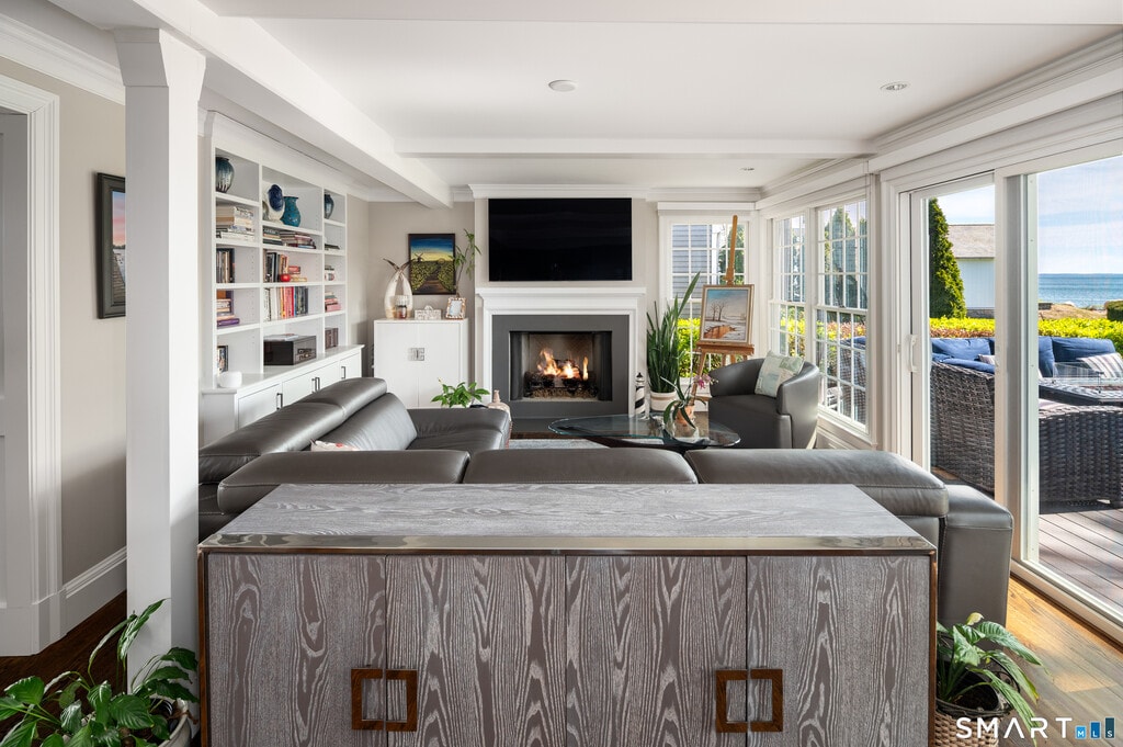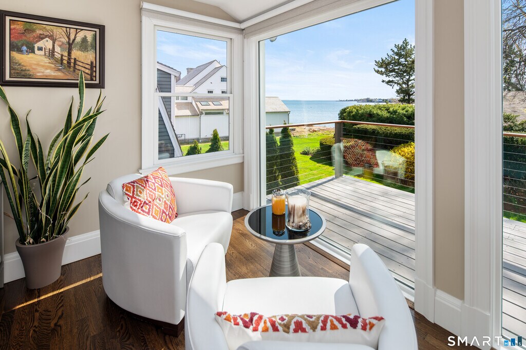 Call for Availability - Casual coastal living with a vacation vibe all year long here at Dolphin Cove. Set on the border of Old Greenwich close to Innis Arden Golf Club, the residents of the private Dolphin Cove waterfront community enjoy over 3 acres of lush green lawns, sandy beach, in ground heated pool, tennis and pickle ball courts, clubhouse, boat slips and yacht club. Open concept, bright and crisp interiors enjoy sparkling water views from just about every room. The primary bedroom has a wall of glass overlooking the water, with sliders out to the deck. Two additional second floor bedrooms share a bath. A private ensuite makes for the perfect home office or weekend guest space. An oasis to soothe the soul. MLS# 24170061
