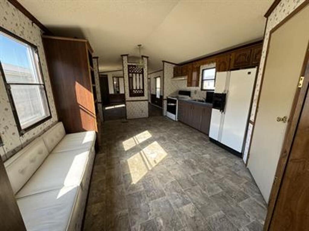 Affordable priced home ready for occupancy. Great home that offers an open floor plan and located in a great neighborhood. Home offers a split bedroom floor plan with an open floor plan for the main living areas. Large master bedroom with master bath. Bedroom is large enough to hold those larger furniture items. Spacious eat in kitchen with all appliances conveying. Just off of the kitchen is a walk in laundry closet that include the washer and dryer. Good sized living room with the secondary bedroom and hall bath being just a few steps away. Most of the flooring has been updated with the remainder of the home being well maintained. Nice level lot with the mobile home having a good-sized front porch and detached carport. Affordable living, great location and ready to move in to and live.