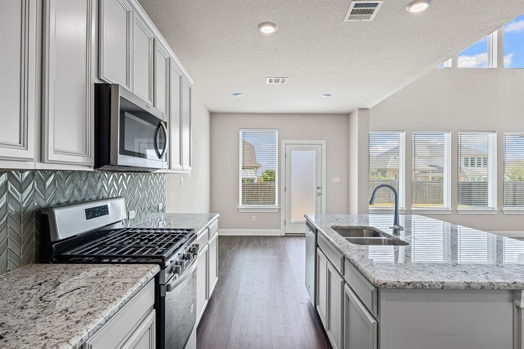 2021 built home. Larger home provides 4 Bedrooms, 2 Living Areas, 2 Dining areas, Media Room. Open-Living Concept with a Grand Staircase Entry, High Ceilings. Neutral Paint Tones and good Natural Light. Primary bedroom on main level. The second Level features its own living space plus Media Room. Upgrades include Kitchen Sink , Master Bay Window, Bathroom Faucets, Upstairs Shower, and Premium Larger Lot with good sized Back Yard. Neighborhood Pool in Walking Distance 1 block away, close to HEB, Home Depot, Schools and more. 2 medium sized Pets allowed. Move in available Nov 10. Also Listed For Sale MLS #6935629