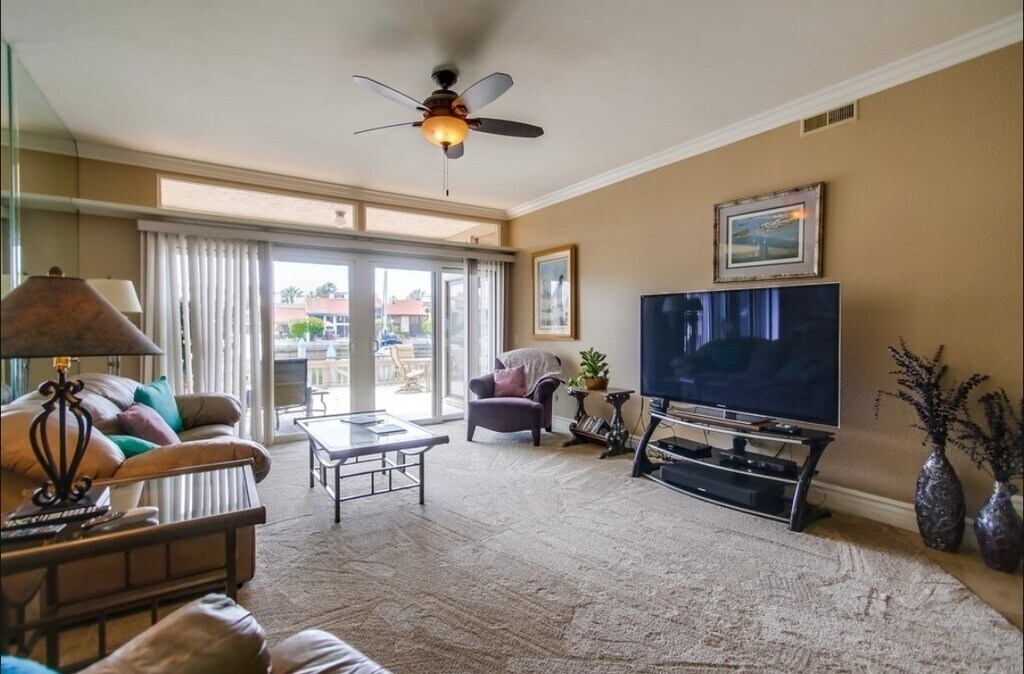 A rare ground-floor, west-facing corner unit in Kingston Court, offering stunning nightly sunset views over the water from your oversized patio! Thoughtfully renovated with designer cabinetry, stainless steel appliances, and luxury vinyl plank flooring throughout, this single-level, handicap-accessible home is move-in ready. The open-concept design seamlessly connects the kitchen and living areas, flooding the space with natural light. Wake up to serene water views from your master suite, and enjoy ample storage, including private owners' closets. Located just a short walk from tennis courts, a dog park, the Coronado Cays Yacht Club, Calypso Café, and Grand Caribe Isle for outdoor adventures and fishing. Plus, with a 32.5' boat slip, there's plenty of room for all your water toys. Downstairs units in Kingston Court are rarely available— A rare ground-floor, west-facing corner unit in Kingston Court, offering stunning nightly sunset views over the water from your oversized patio! Thoughtfully renovated with designer cabinetry, stainless steel appliances, and luxury vinyl plank flooring throughout, this single-level, handicap-accessible home is move-in ready. The open-concept design seamlessly connects the kitchen and living areas, flooding the space with natural light. Wake up to serene water views from your master suite, and enjoy ample storage, including private owners' closets. Located just a short walk from tennis courts, a dog park, the Coronado Cays Yacht Club, Calypso Café, and Grand Caribe Isle for outdoor adventures and fishing. Plus, with a 32.5' boat slip, there's plenty of room for all your water toys. Downstairs units in Kingston Court are rarely available—