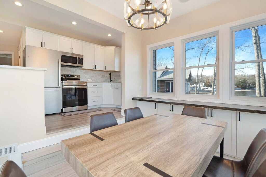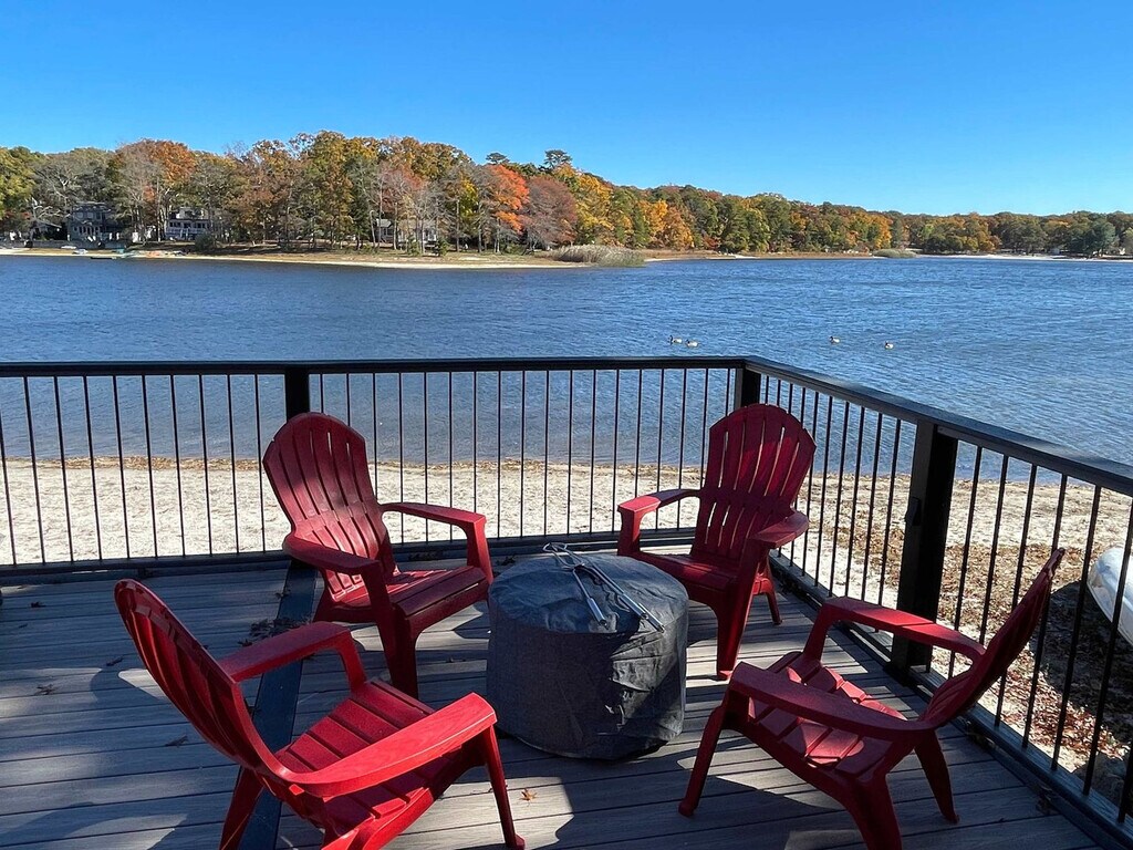 Feel at home in Lake Panamoka Bliss, a true waterfront escape with direct lake access, a private sandy beach, and multiple decks overlooking the water. This home comfortably sleeps up to six guests with a full kitchen, washer and dryer, and everything needed for a comfortable stay. Guests can enjoy the deck for dining and lounging, a beach-level firepit by the water, and a gas grill for easy outdoor meals. Pets are welcome with a fee of $200 per pet per stay; an additional $100 may apply for dogs that shed excessively. Located in a quiet neighborhood with year-round water views, this home is minutes from Long Island’s famous vineyards, wineries, and farm stands. Great nearby restaurants and shopping are also nearby, with easy access to North Shore and East End destinations. A car is recommended for exploring the area. Nearby attractions include North Tavern (2.8 miles), Blue Water Fish (2.8 miles), La Plage (3.7 miles), Watermark of Wading River (4.6 miles), and Tanger Outlet Riverhead (7.1 miles). Quiet hours are between 10 PM and 8 AM. The primary renter must be at least 25 years old to book. For stays over 21 days, any extra utility costs beyond the initial charged amount are the guest's responsibility. [SI]