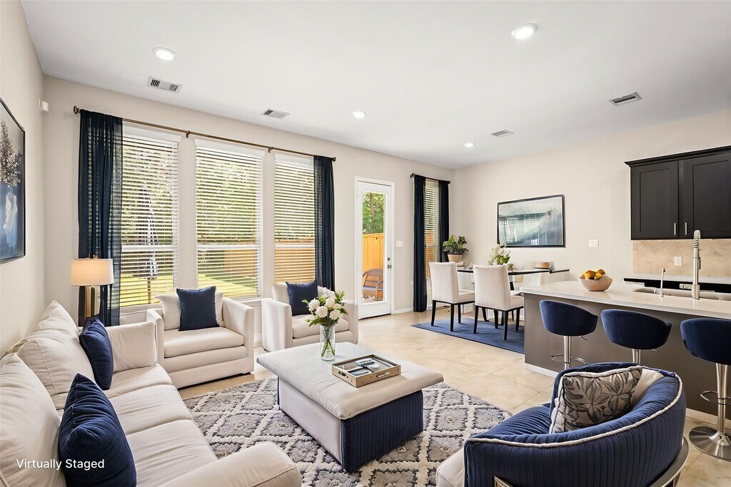 Immaculate townhome on a cul-de-sac in the master-planned community of Grand Central Park. Conveniently located near major hospitals,shopping,and dining,and just a short drive to The Woodlands. The open-concept layout features high ceilings and 20" tile flooring throughout the main level. The kitchen includes stainless steel appliances,upgraded quartz countertops,under-cabinet lighting,a large walk-in pantry,and a second full pantry. Upstairs offers a versatile loft that can serve as an office or flex space. The primary bedroom features an ensuite bath with dual sinks,an oversized walk-in shower,and a spacious closet. The landscaped front yard adds curb appeal,while the backyard boasts a fig tree and open wrought iron fencing backing to the tranquil greenbelt and pond. An extended stamped patio with a custom awning creates the perfect outdoor retreat. Refrigerator,washer,and dryer are included. Neighborhood amenities include a 13-acre lake,The Lake House,pools,and parks. MLS# 51486613