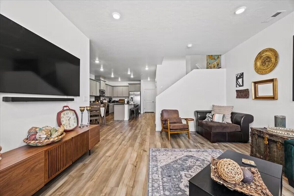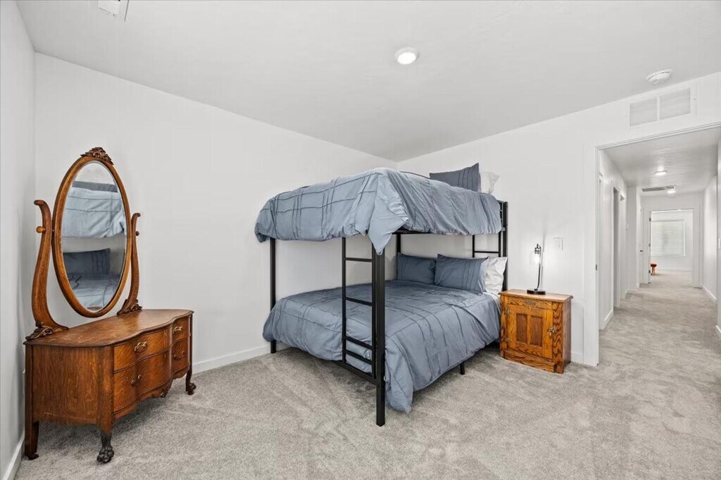 Stay in this modern, brand new home in Eagle, featuring a new 2025 build with modern fixtures and a high-end feel. Relax on the comfortable front patio or enjoy the community pool open in the summertime. The home is conveniently located across the road from Eagle Island State Park and close to the downtown restaurant scene. The massive master bathroom and closet complement the king-size bed in the master bedroom. This professionally decorated space boasts unique furnishings and a warm ambiance. The master bedroom features a king-size bed, while the second room offers a queen bed and the third room includes a double queen bunk bed. The common area upstairs has a fold-out sofa bed, and there's a rollaway bed downstairs. The kitchen is fully loaded with stainless steel appliances, including a microwave, fridge, stove, and dishwasher, along with glasses, mugs, dishes, and cutlery. Complimentary WiFi, live TV, and coffee are provided. The property offers secure double car garage parking and is pet-friendly with a dog park a very short walk away. Enjoy easy access to our amazing local water park and State Park. The home is also close to the downtown restaurant scene, making it a perfect spot for exploring local attractions. Townhouses sometimes have additional noise with neighbors, although no complaints have been received yet. The neighborhood is new construction, and during the day, they are still building out about half of it, which may result in dust and work noise when outside. Enjoy easy self-check-in via a secure door keypad. The home is professionally cleaned and sanitized between each and every guest stay. With lightning-fast WiFi, this home is ideal for working remotely. [SI]