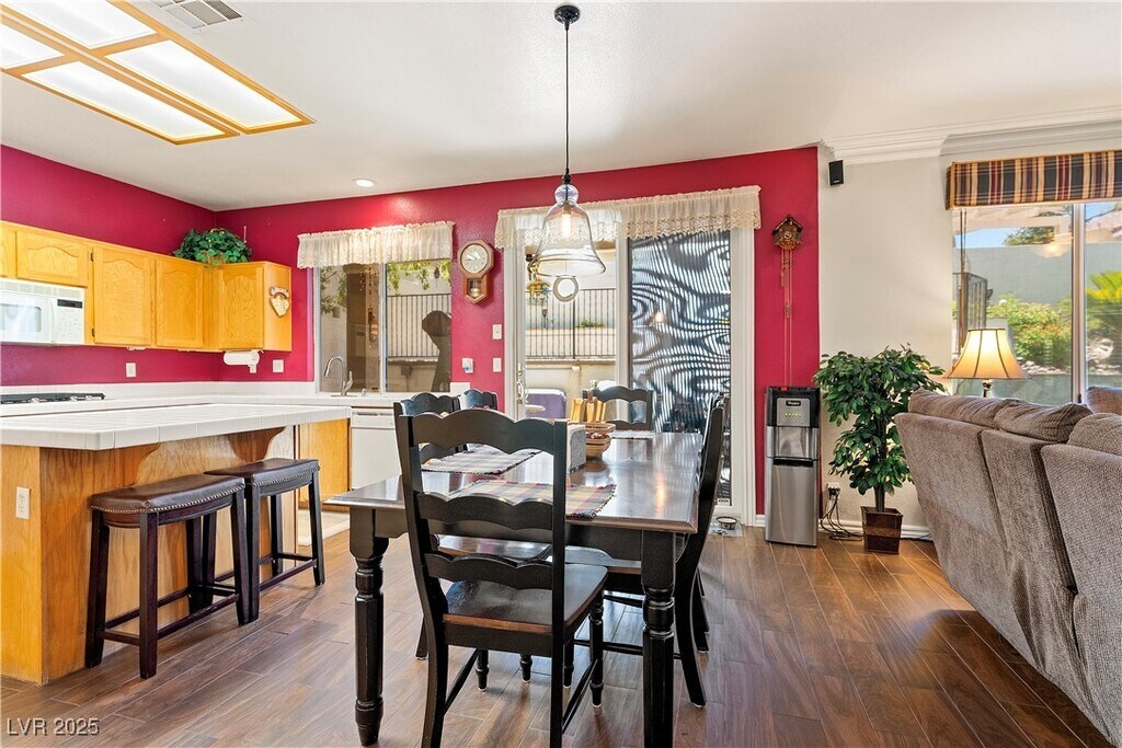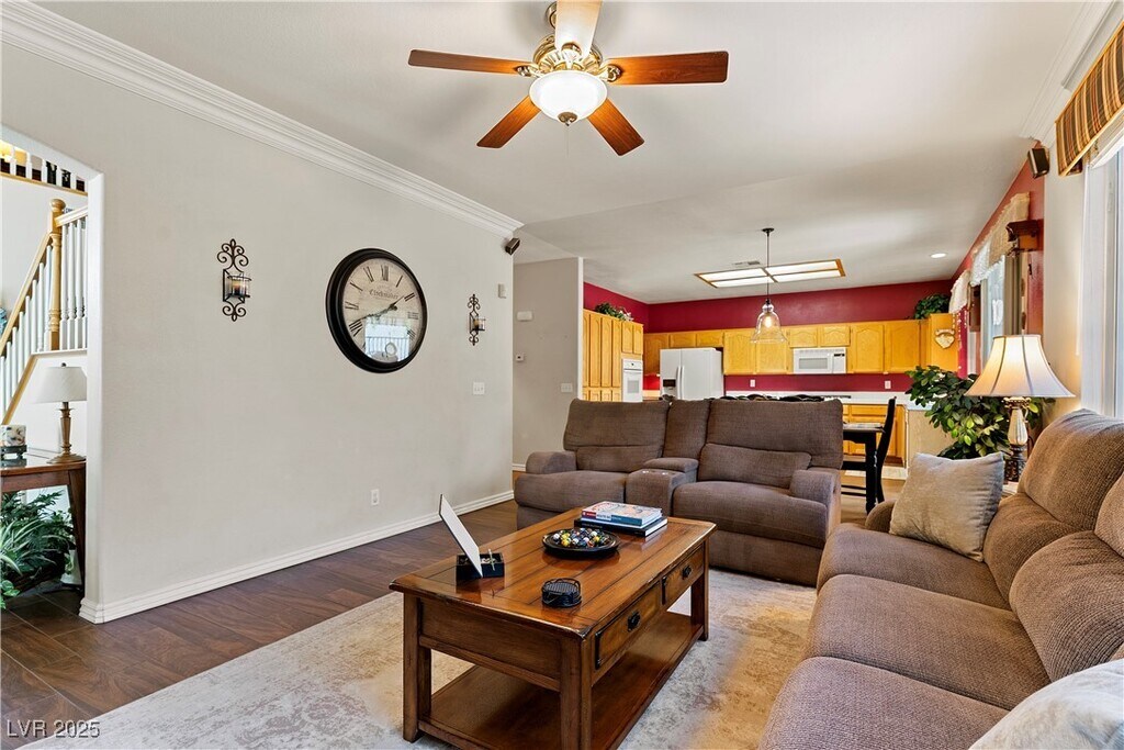 Located in the heart of Green Valley, this beautifully upgraded 4-bedroom, 3-bath home offers over 2,500 square feet of comfortable living. The open-concept floor plan provides a bright and inviting space, perfect for both relaxing and entertaining. The kitchen features quality appliances, ample counter space, and plenty of storage. The spacious primary suite includes a luxurious bath with a soaking tub and separate shower. Additional highlights include upgraded flooring, plantation shutters, and a three-car garage. Enjoy a private backyard retreat complete with a covered patio and sparkling pool—ideal for gatherings or quiet evenings at home. Conveniently located near The District at Green Valley Ranch, parks, shopping, dining, and top-rated schools. This home is move-in ready and offers the perfect blend of comfort, convenience, and style.