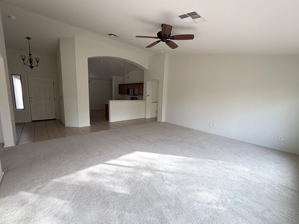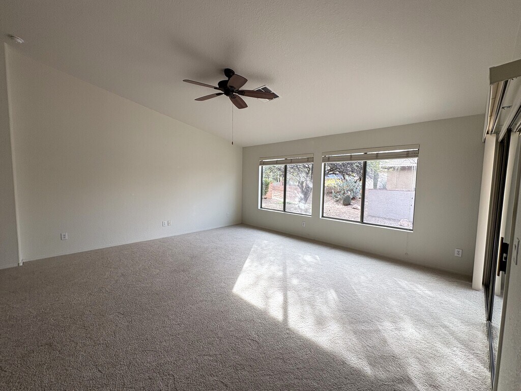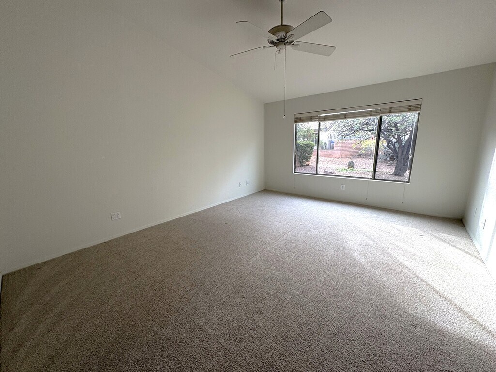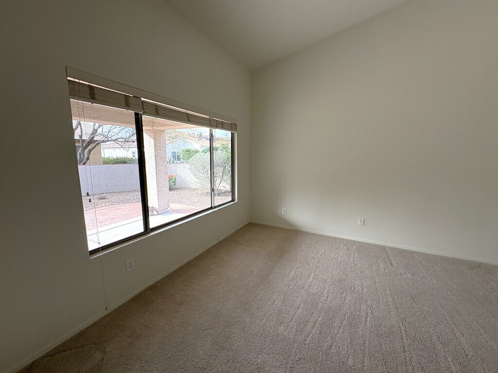 2BR 2BA +Den, 1569 sq ft. Great location near the recreation center, pool, pickleball courts and Quail Creek Restaurant. The popular Oakmont model has an open floor plan concept and cathedral ceilings. New carpet throughout. A wide arched opening gives you a glimpse into the kitchen where Corian countertops and rich desert colored floor tile set the stage for a cozy corner dining nook that’s wrapped in view windows. Your den is open to the great room or perhaps you want to use this space for a formal dining area. Split bedroom arrangement will provide privacy to all your visitors. Renters have full access to all Quail Creek amenities including: 27 holes of championship golf, pro shop, and practice facility. Two swimming pools, two lap pools, hot tubs and spa. Anza Fitness Center The newly expanded and remodeled Quail Creek Grill and Bar The newly remodeled Madera Clubhouse with library, coffee bar, billiard room, card rooms and performing arts stage Creative Arts and Technology Center Pickleball courts Three golf courses and much, much more. The Canyon Club, a new facility recently completed enhances the outstanding amenities currently offered at Quail Creek with approximately 36,575 sq. ft. of added indoor amenities, plus additional outdoor amenities. The Canyon Club serves as a social hub of the community and showcases a resort-style pool, a state-of-the-art fitness center, Bistro, game room and much more. DEPOSITS, FEES AND OTHER INFORMATION No pets allowed. No smoking. Tenant pays all utilities, trash pickup, yard maintenance, routine pest control, and TV/Internet service. $1800 refundable security deposit. $500 non refundable cleaning fee collected up front. Tenant is required to have the carpet cleaned professionally once a year. Owner pays HOA fees and property taxes.