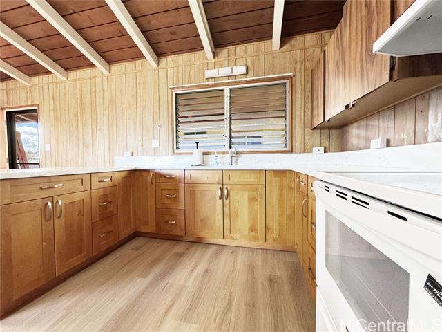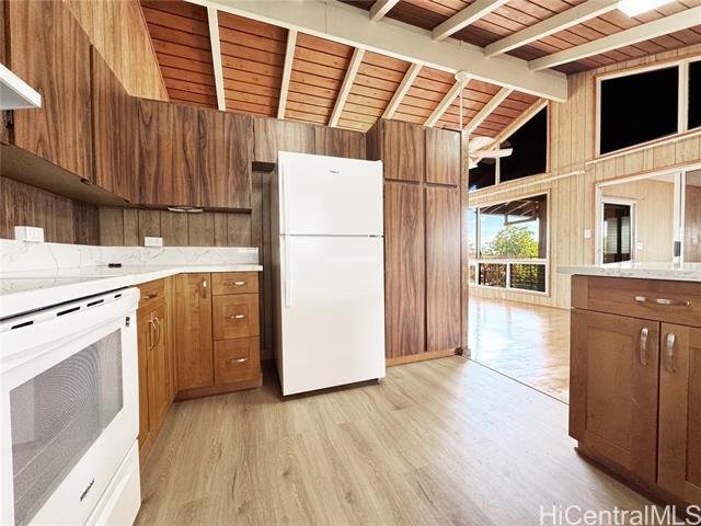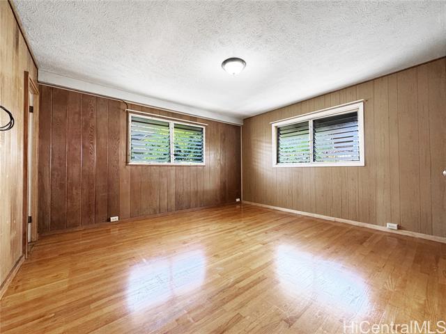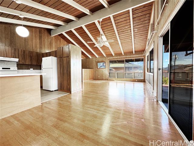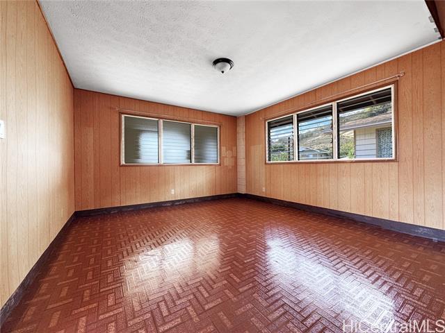 This large, 4 bedroom 2.5 bath upper-level unit of a duplex in Lower Kalihi has been beautifully preserved. The interior features a bright and open floor plan with a vaulted ceiling, creating an airy atmosphere and open-concept layout includes a spacious kitchen and dining area, a generous living room, and a covered lanai. The modern kitchen boasts granite countertops, and updated electrical. The primary bedroom includes a half bathroom for convenience. Flooring consists wood floors and ceramic tile in the bathrooms, and sheet vinyl in the detached bedroom/flex room. Tucked away on a flag lot, the home is fenced and offers carport parking for two vehicles. Conveniently situated near public transportation, with quick access to the freeway, and securely located across from the police station. This home offers both comfort and convenience. Limit to six tenants. Tenants are responsible for all utilities, including water, sewer, electricity, and cable/internet. Sorry, no pets and no smoking. Renter's Insurance required. Tenants must provide proof of coverage prior to occupancy. Qualifications: minimum credit score of 650 and combined gross income of at least 3x the rent amount.